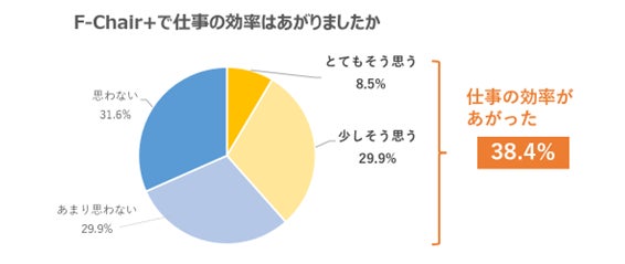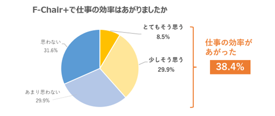 『F-Chair+で仕事の効率は上がりましたか』という問いに対し、4割近くの38.4%が「とてもそう思う」「少しそう思う」と回答しました。3人に1人が業務効率が向上したと考えていることになります。