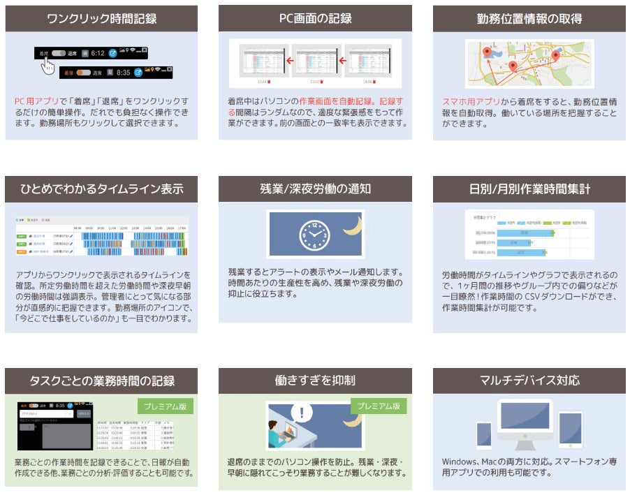 ・始業から就業まで常時記録するのではなく、1時間6画面程度をランダムに保存するのみである