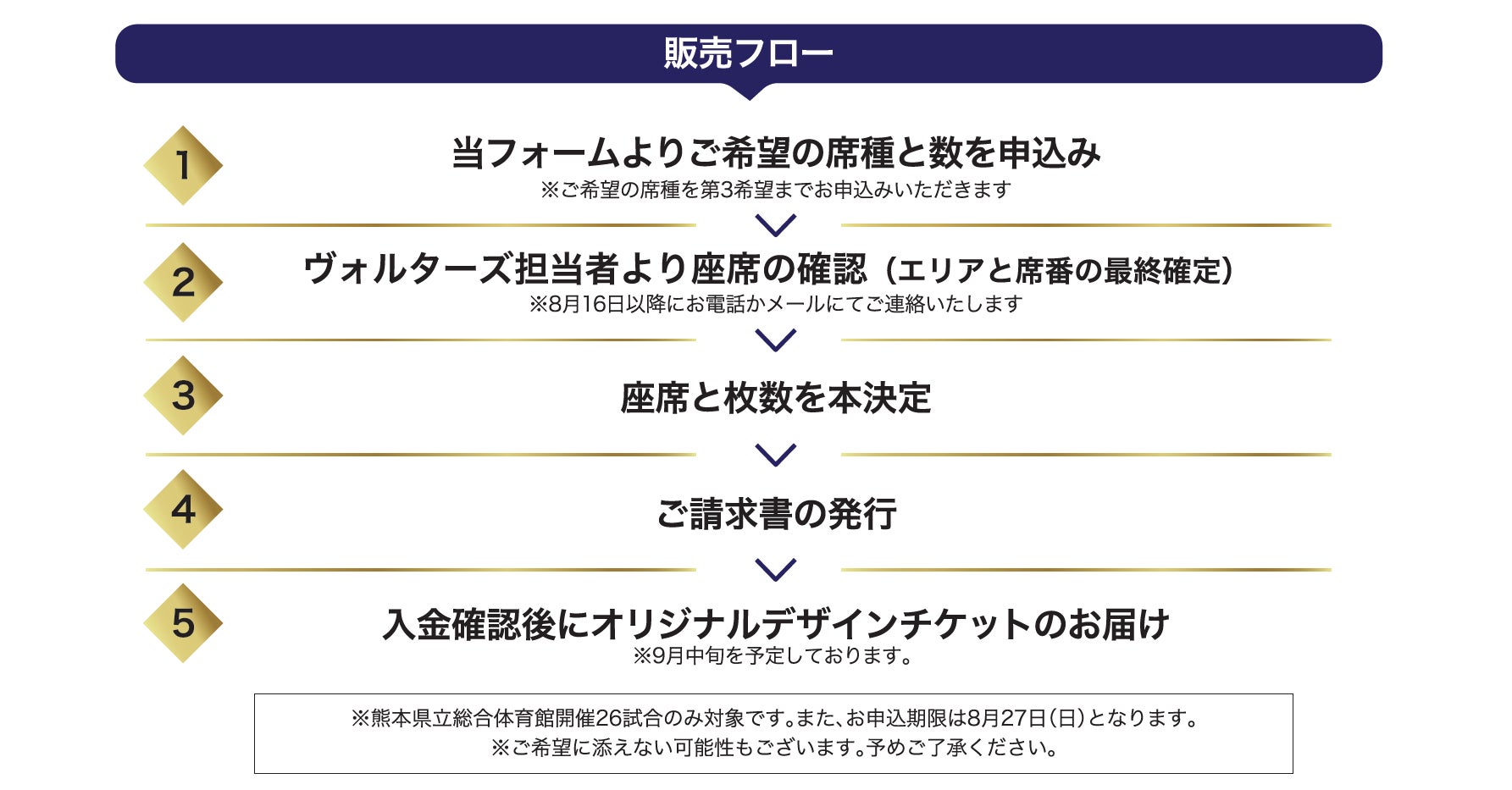 熊本ヴォルターズでは、これまで個人向けにシーズンシートを販売してきました。その中で、法人の方々からもシーズンシートのお問い合わせを多くいただいていました。新型コロナウイルスの影響も落ち着いた新シーズンより、ご要望にお応えした法人シーズンシートの販売を開始します。お客様や社員にもお渡ししやすいよう、紙のチケットでご用意させていただく予定です。
