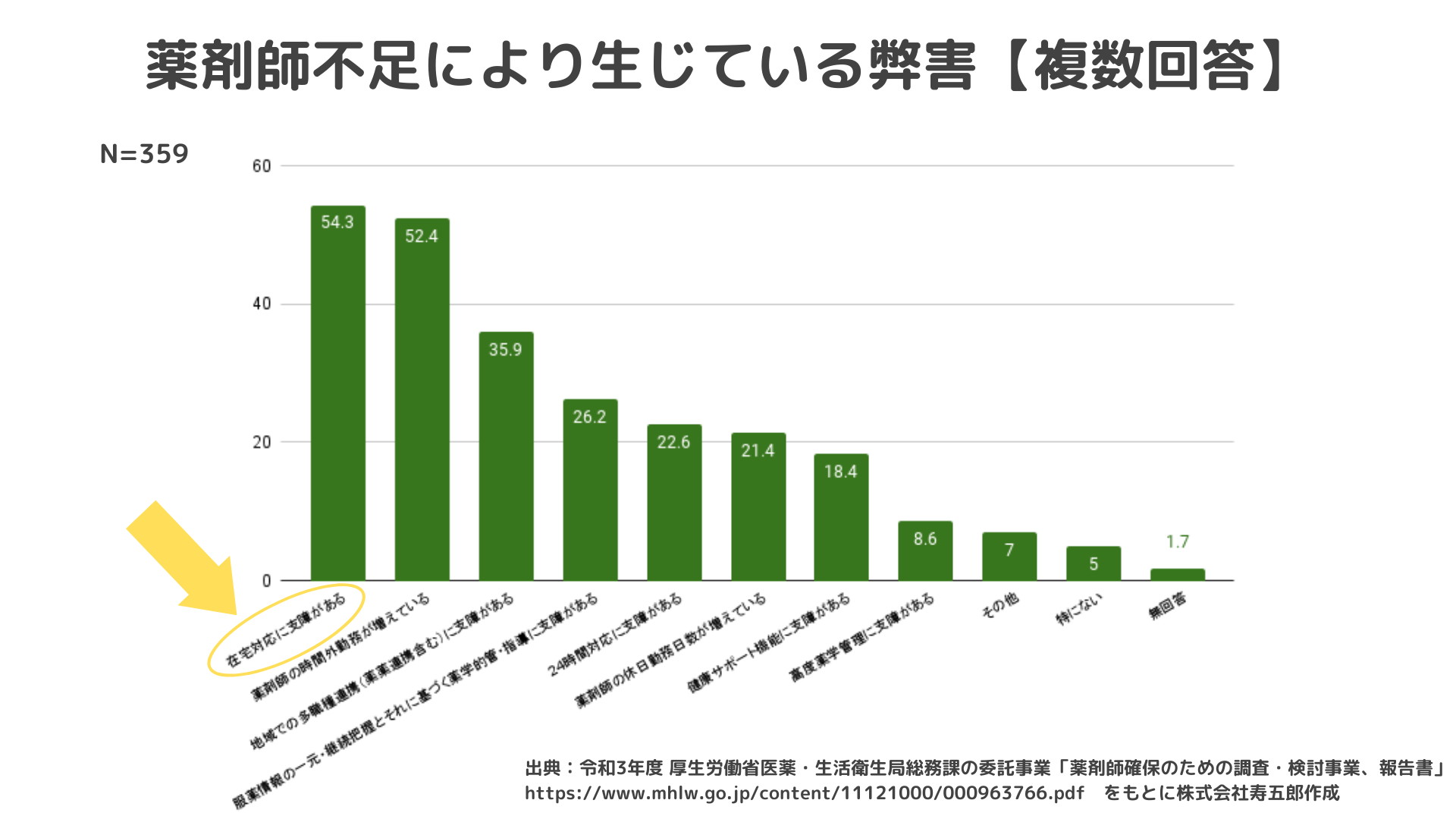 ■ 54.3%が薬局薬剤師の人手不足による「在宅対応の支障」を課題としている