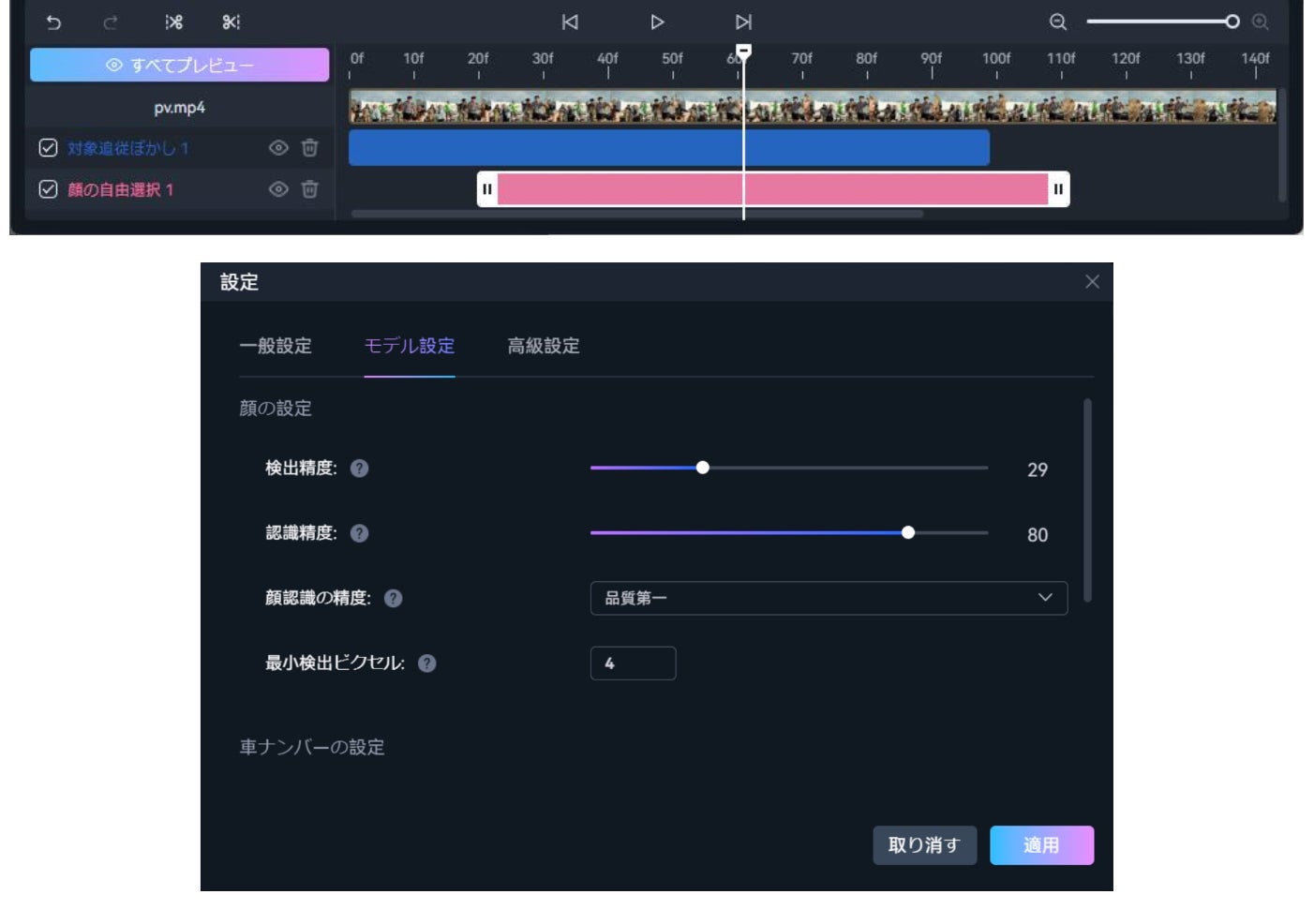 また、複数の編集も可能です。例えば「顔のモザイク」と「車のモザイク」を同時に編集することができます。