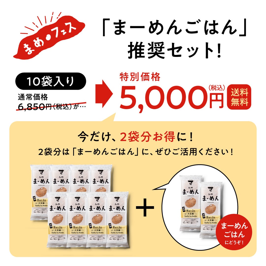 期間中は九州産大豆でつくった麺「九州まーめん」が、通常10袋6,850円(税込)のところ、セール限定価格で5,000円(税込)に。