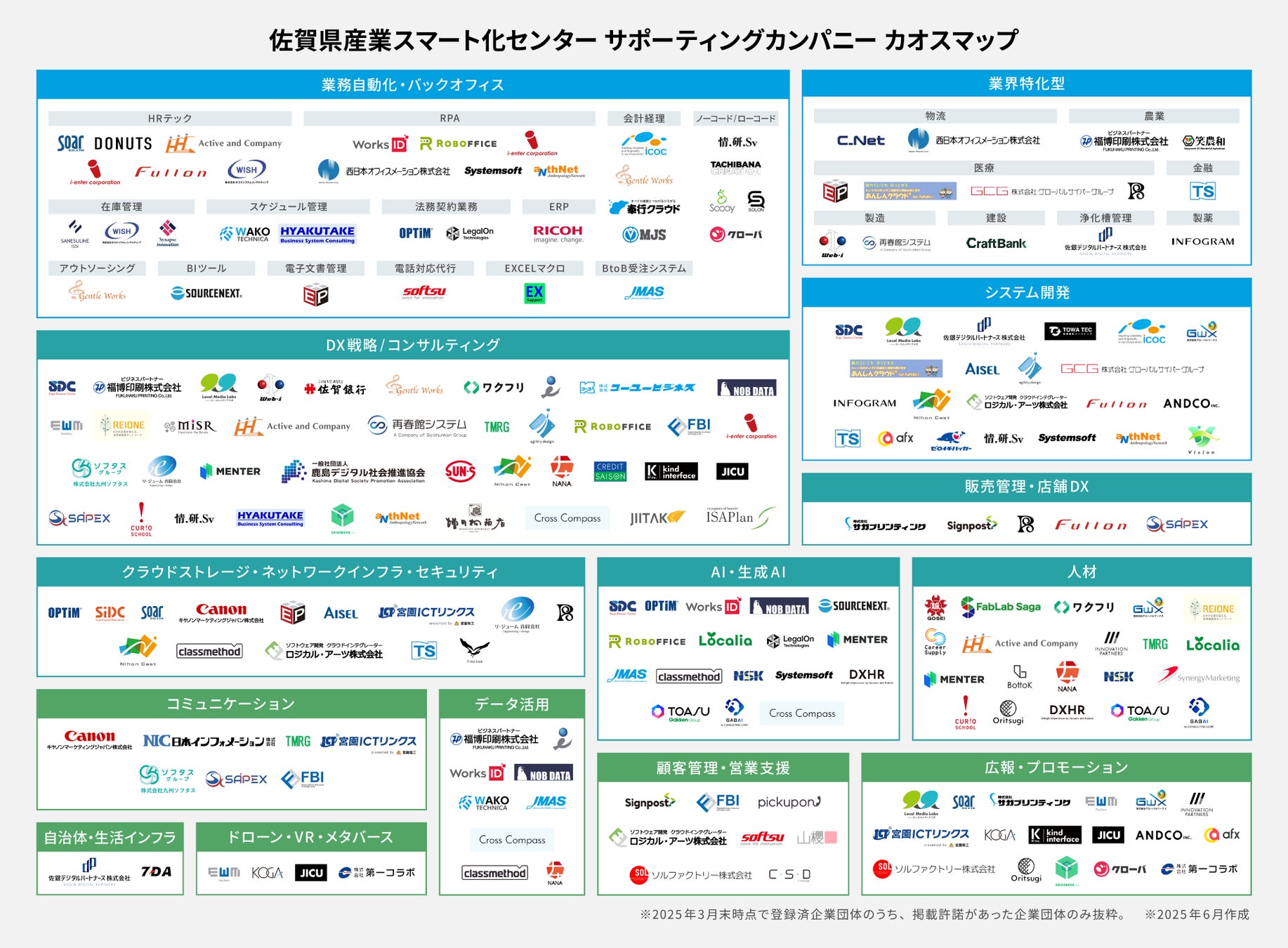佐賀県産業スマート化センターは、2025年7月3日(木)に、当センターと連携する支援企業(サポーティングカンパニー)が提供する、サービス・ソリューションを一覧化した「カオスマップ」を当センターホームページにて初公開いたしました。