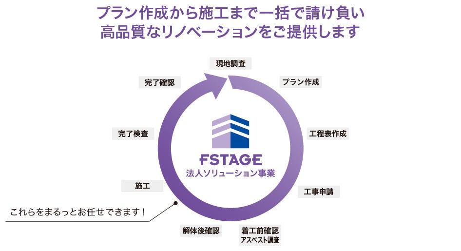 エフステージの「法人ソリューション事業」とは買取再販業者様向けの高価格帯マンションに特化したリノベーションサービスです。