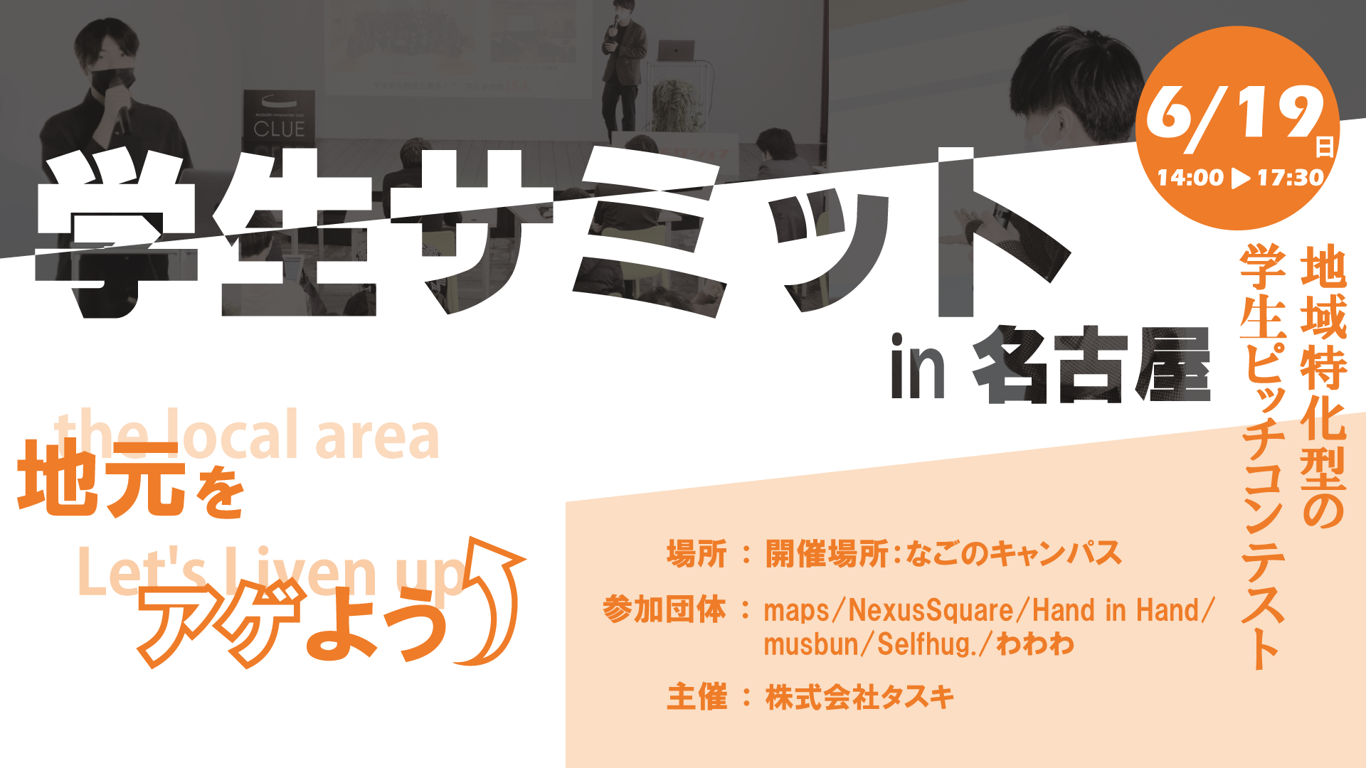 株式会社タスキでは、モグジョブと連携する事業として「学生サミット」を開催致します。「モグジョブ」は、企業の特徴や仕事内容を切り口に学生と企業をマッチングするサービスですが、この「学生サミット」は学生側の活動や団体としてのソリューションを切り口とした新しいマッチングです。地元企業と地元で活動する学生団体が協賛を通して繋がりを作り、コラボや連携、サポートが生まれることで、地域の活性化を目指します。