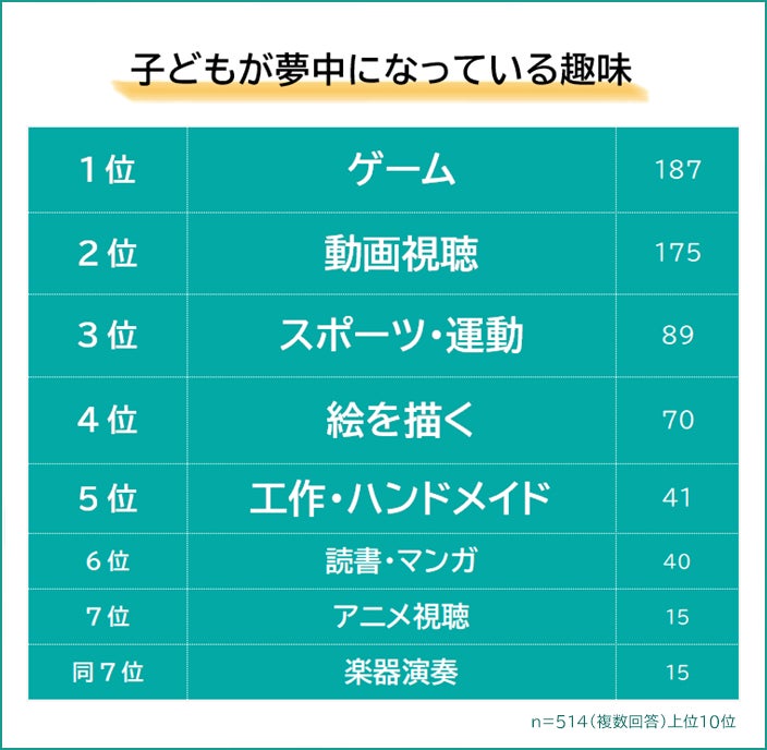 【子どもが夢中になっている趣味ランキング】ママ・パパ514人アンケート調査