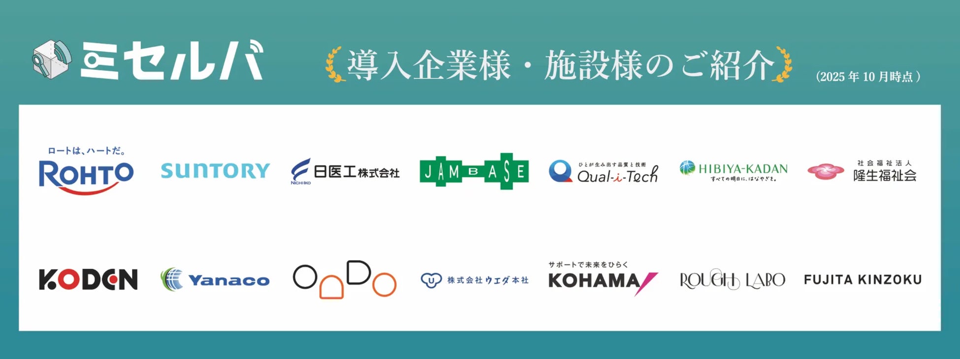 サービスサイト上に導入企業のロゴを一覧で掲載。製造業(製薬・飲料・金属・機械)から、老人ホーム、オープンイノベーション施設まで、どのような業界・企業が『ミセルバ』を活用しているのか、直感的に把握できるようになりました。