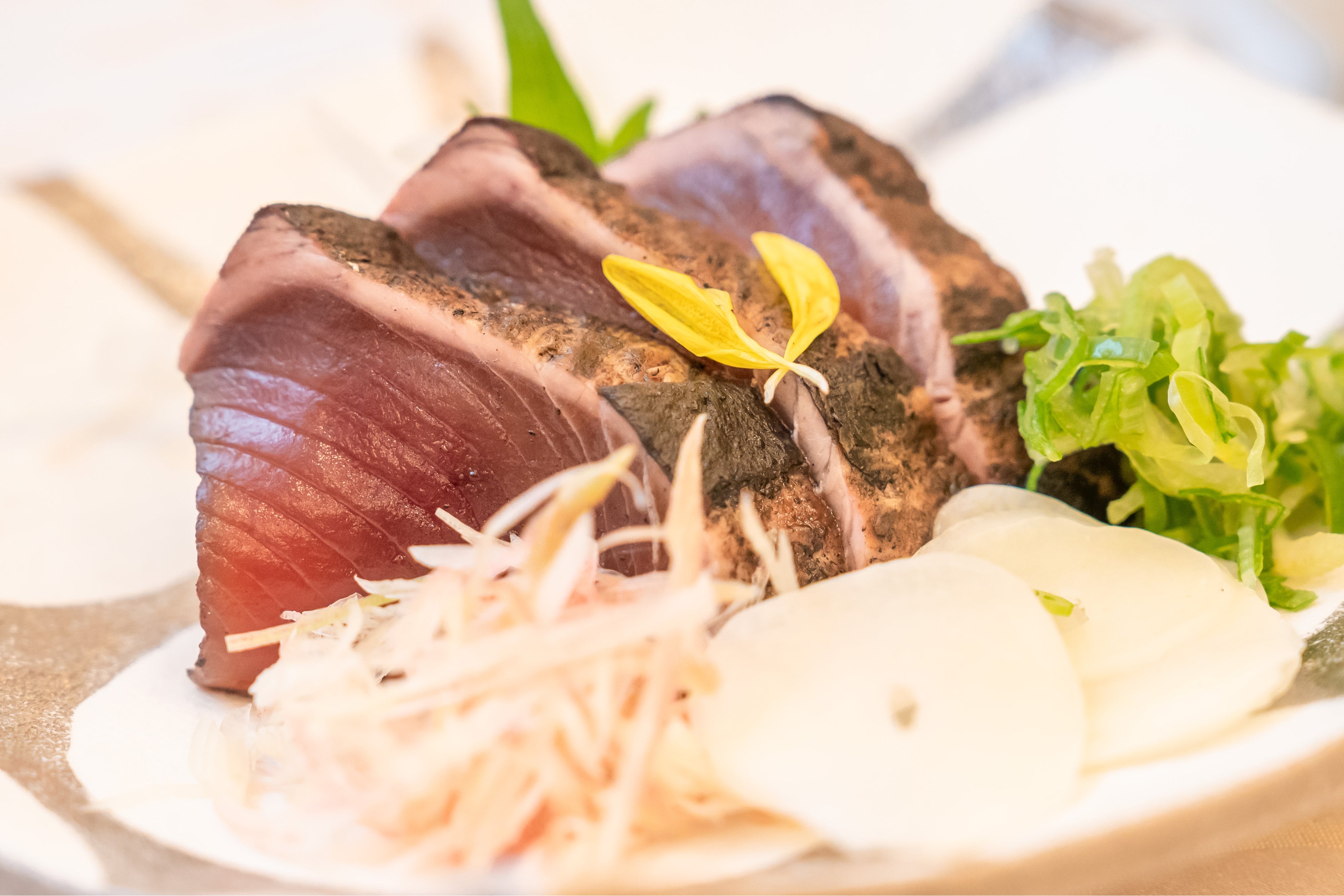 - 高知県ならではの食材を使った「高知家コース」や高知17酒蔵の土佐酒でおもてなし