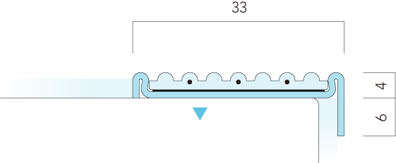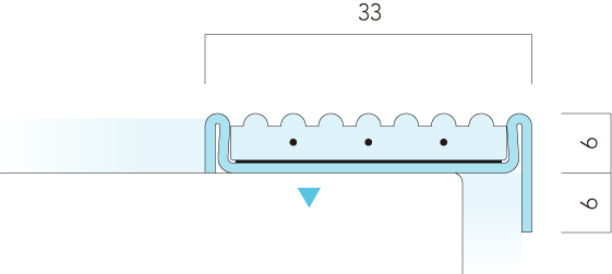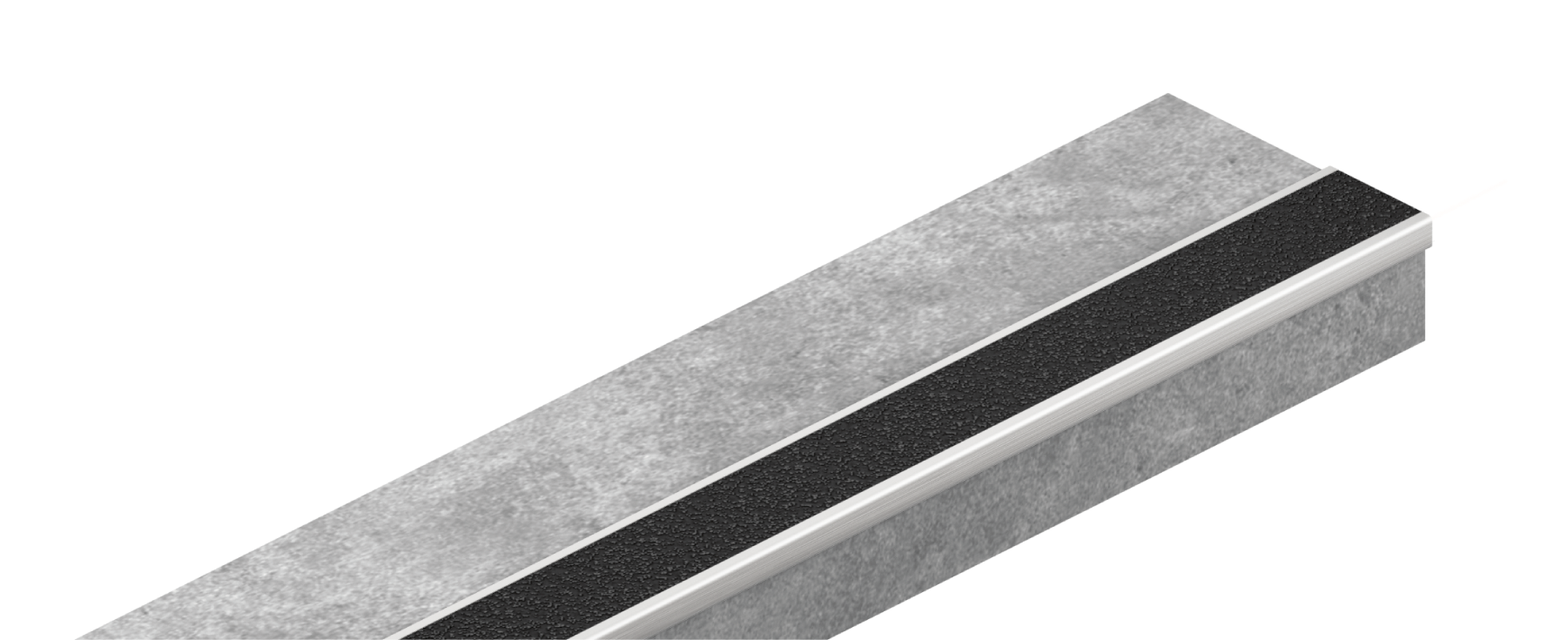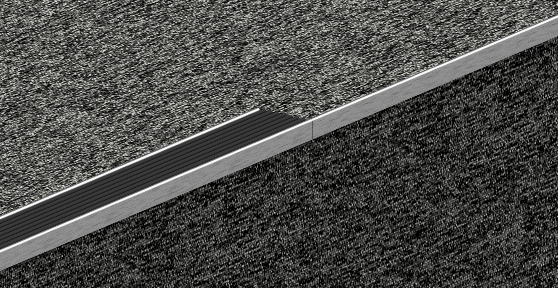 劇場や講堂のような「すり鉢状大空間」の設計において問題となるのが、座席ゾーンと階段の段鼻処理。従来の施工では、階段のノンスリップを座席ゾーンまでそのまま延長するか、ノンスリップとは断面形状の異なる見切り材を、不整合を承知で座席ゾーンに設置するしか方法がなかった。