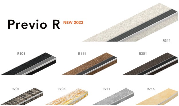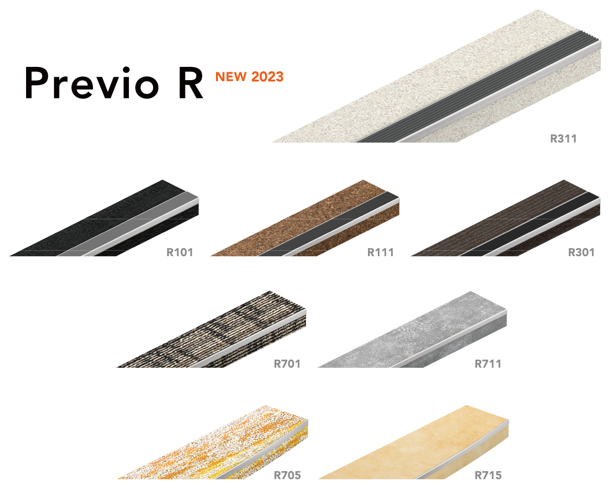 ミニマル&コンパクトを究極まで推し進めた『Previo T』に対し、新商品の『Previo R』は、Tのコンセプトを受け継ぎつつも、①ステンレスによる耐久性の向上、②安全性・施工性を高めた仕様、③広範な階段工法に対応できる汎用性の高いデザインをめざした。デザイン至上主義の T に対し、使い勝手のよい R というポジショニングによって、互いに補完的なラインナップを構成する。