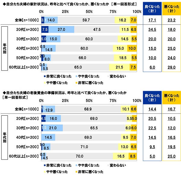 - 「夫婦の家計状況が昨年より良くなった」17%、20代では35%