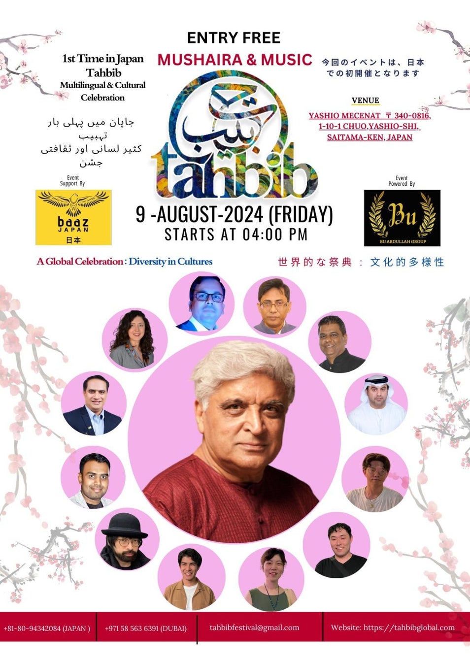 のイベントを2024年8月9日(金)埼玉県八潮市の八潮メセナにて、インドの著名な詩人であり、脚本家のジャーヴェード・サーハブ氏を招いて開催。