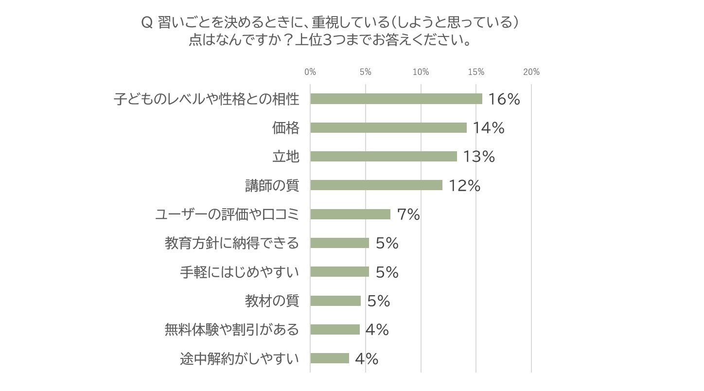 - 習いごとを決めるときに重視するのは「子どものレベルや性格との相性」