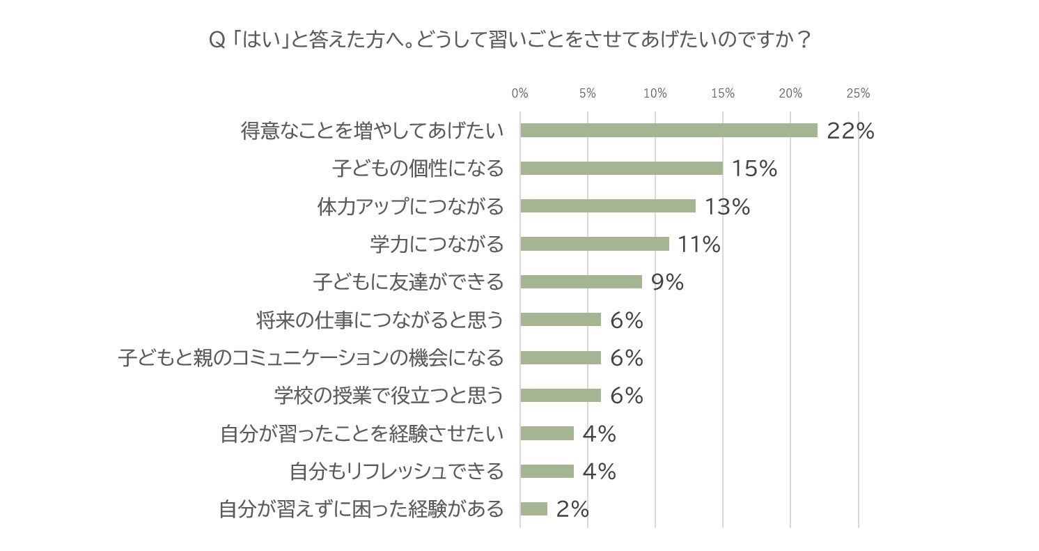 - 習いごとをさせたい理由は「得意なことを増やしてあげたいから」