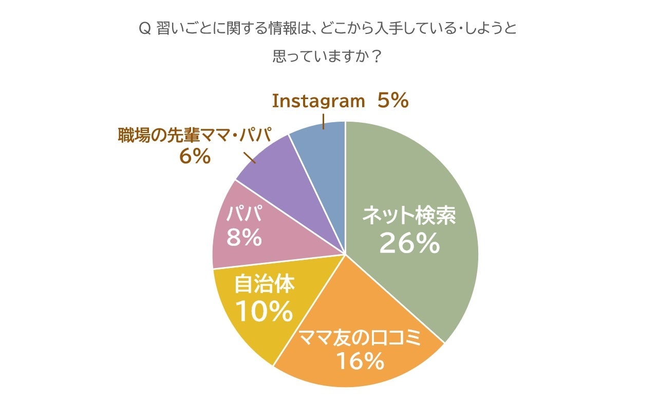 - 習いごとに関する情報は「ネット検索」「ママ友の口コミ」が上位