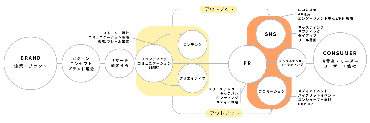 PR:長年実績のある美容のPRを始め、インフルエンサー、SNS運用等の認知拡大施策
