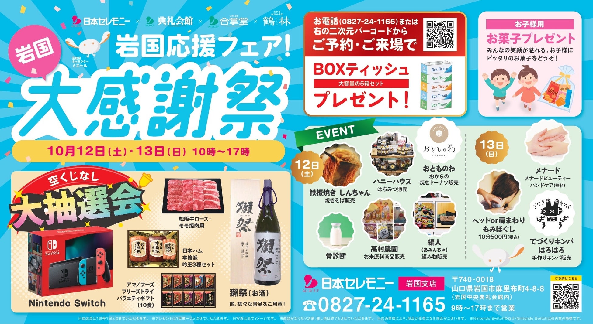岩国納骨堂『鶴林』のオープンに合わせ、地域のお客様への感謝を込めて「岩国大感謝祭」を開催いたします。