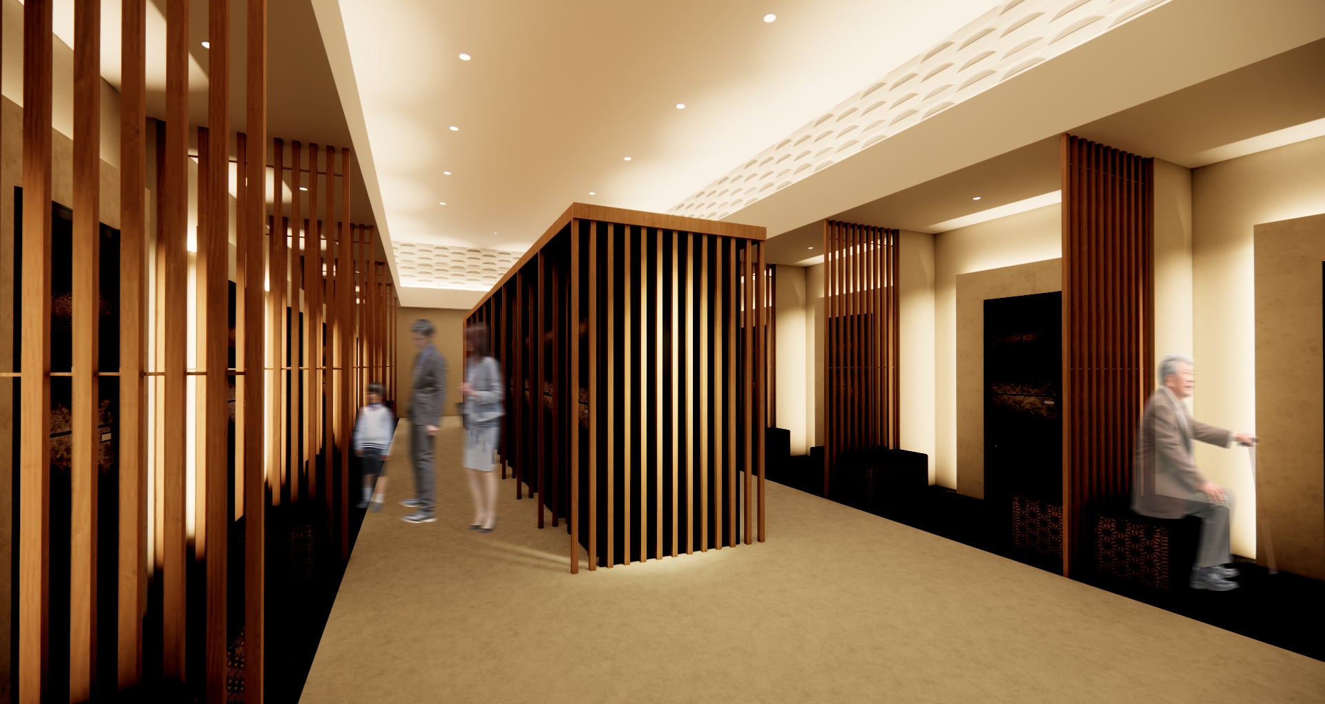 5階は和モダンをテーマに、温かみのある空間を演出。自然素材を活かしたデザインと、柔らかな照明により、穏やかな和の雰囲気を感じられるようになっています。訪れる方々が心安らぐように、伝統的な和の美しさを現代的にアレンジし、優しさとぬくもりに満ちた空間を作り出しています。