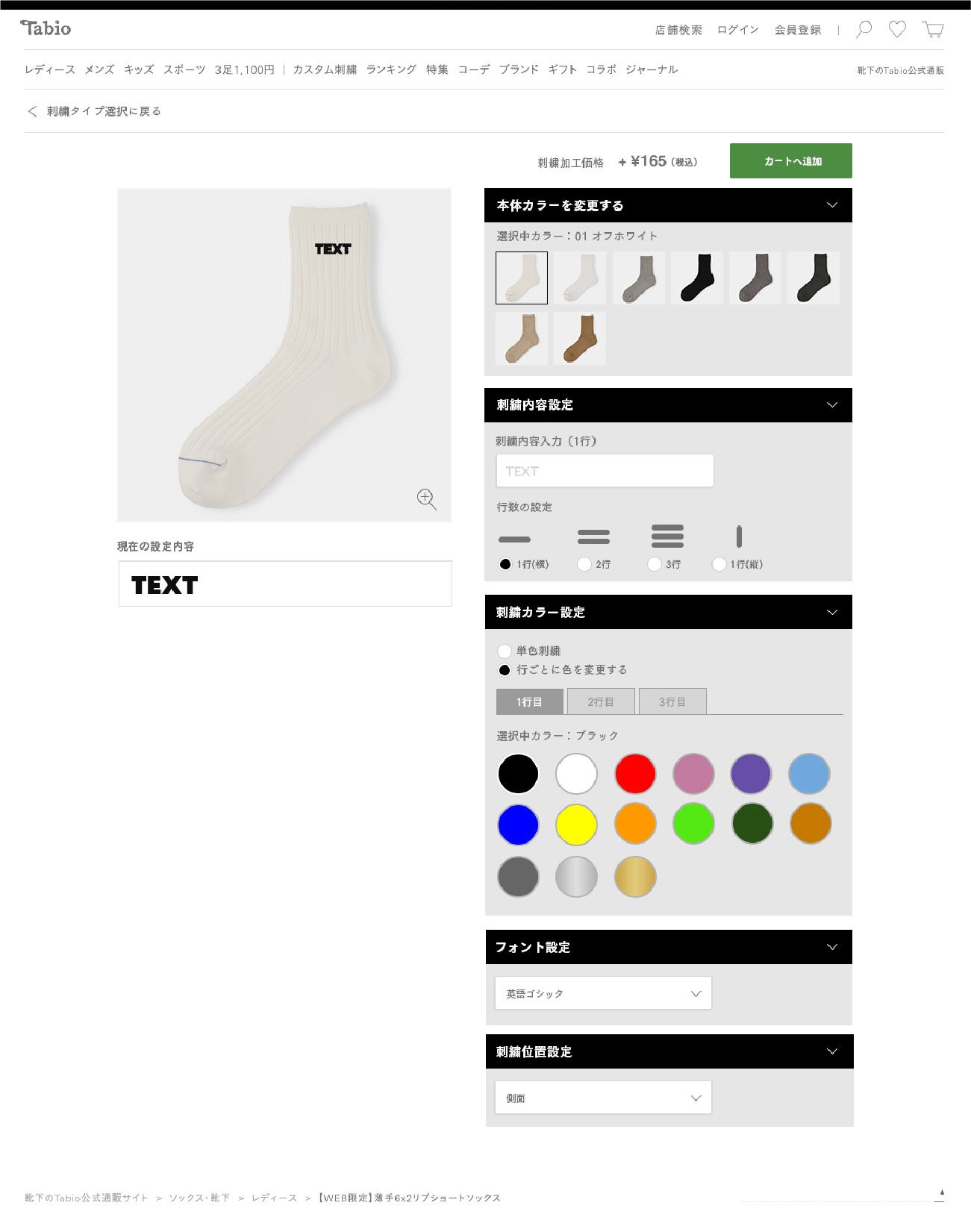 刺繍サプライチェーン(EC~生産)の包括支援システム「DG.NET」をタビオ社のオンラインストアと連携。お客様が入力したテキストや選択した色・フォントをその場で刺繍データに変換し、画像化することで商品の完成イメージをオンラインストア上に表示することが可能になりました。