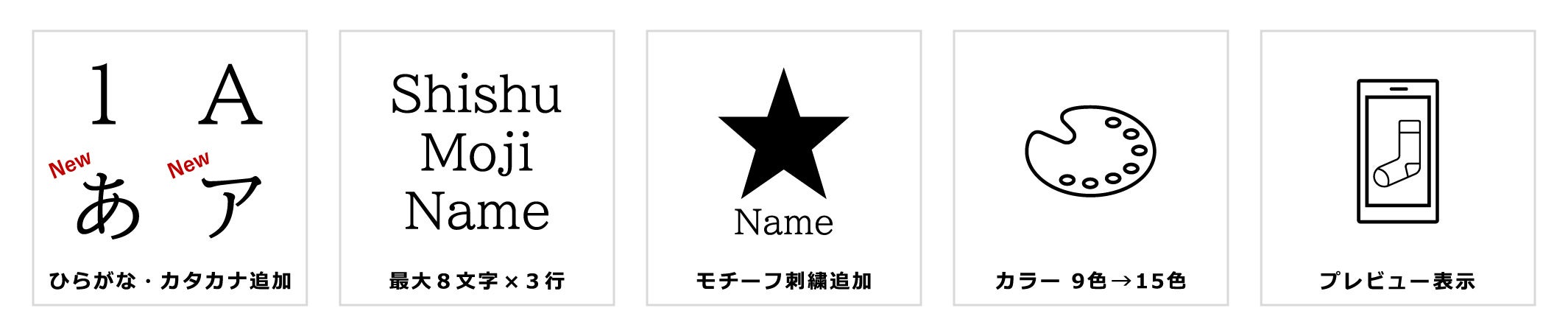 - 刺繍可能な文字数、行数、フォント、カラーが拡充され、表現の幅が広がります。