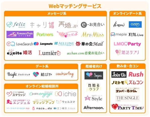 2022年版オンライン出会いサービスのカオスマップを公開!マッチングアプリや婚活パーティーなど幅広く調査