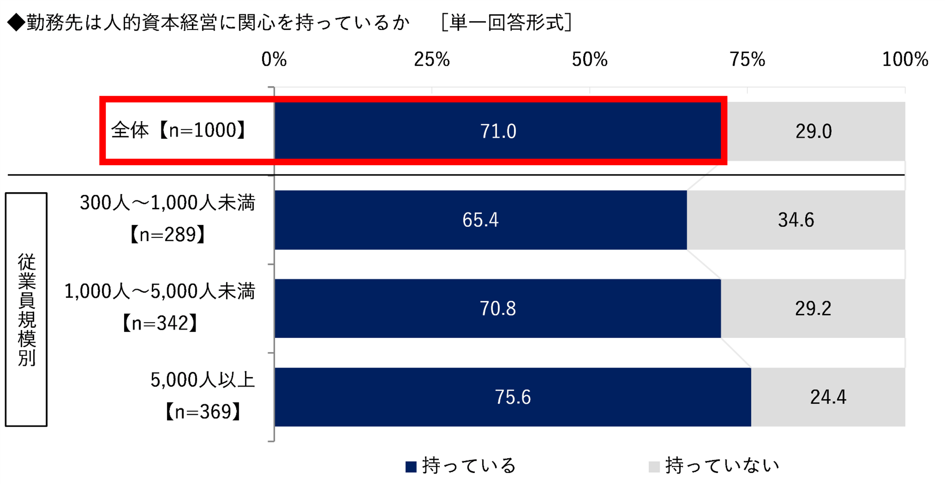 「勤務先は人的資本経営に関心を持っている」という人は70%超
