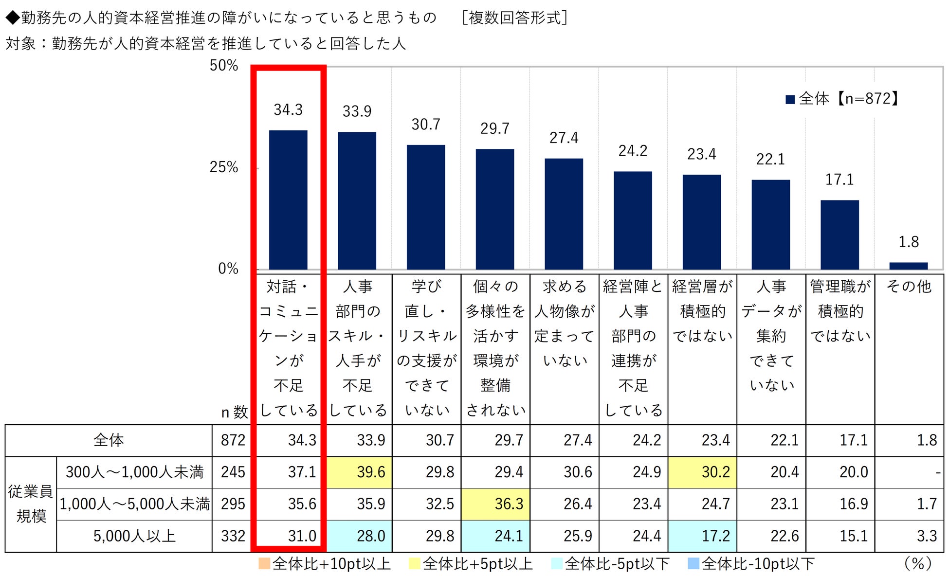 人的資本経営推進の障がいになっていると思うもの 1位「対話・コミュニケーションの不足」