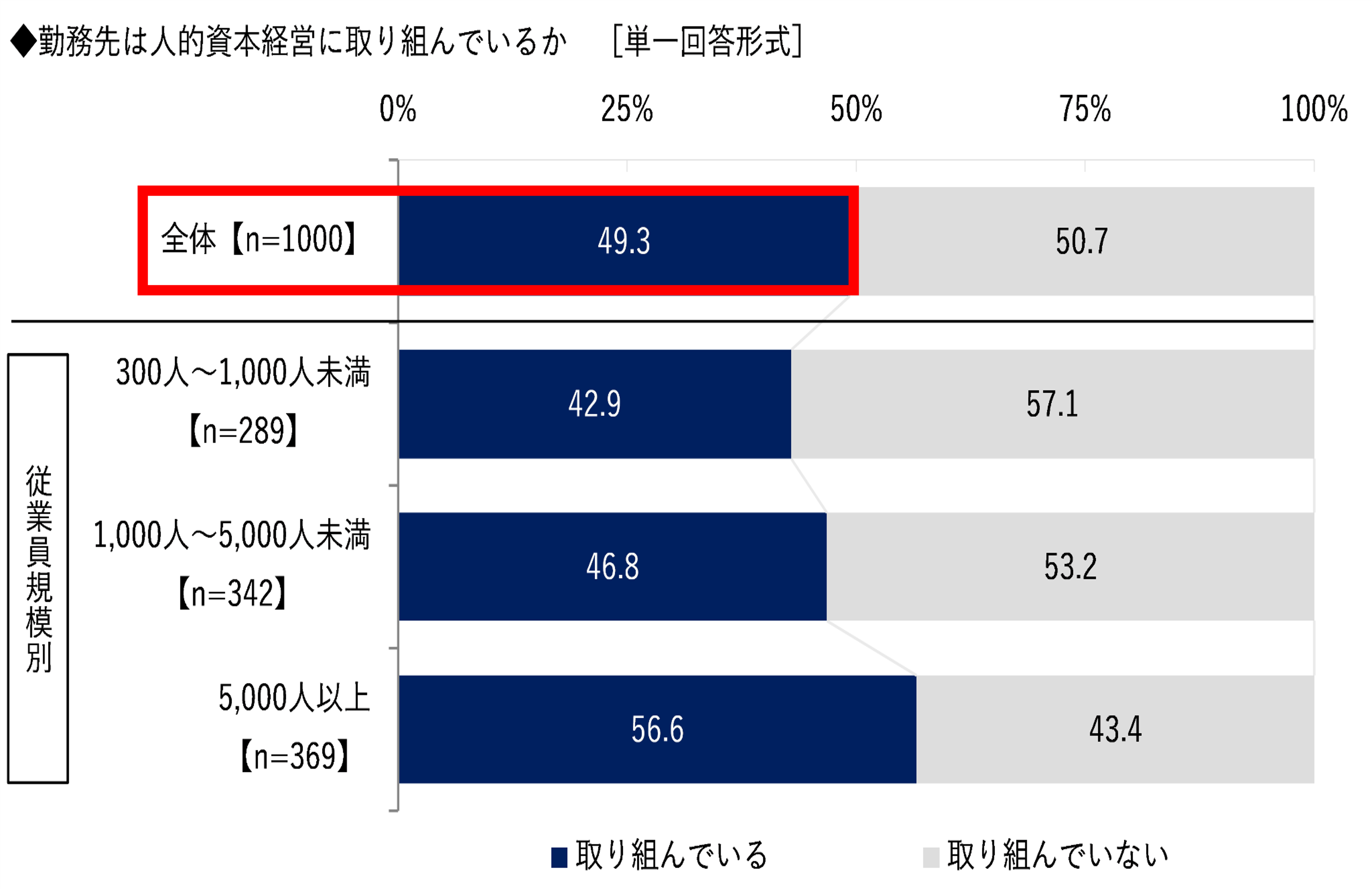 「勤務先は人的資本経営に取り組んでいる」という人は49%