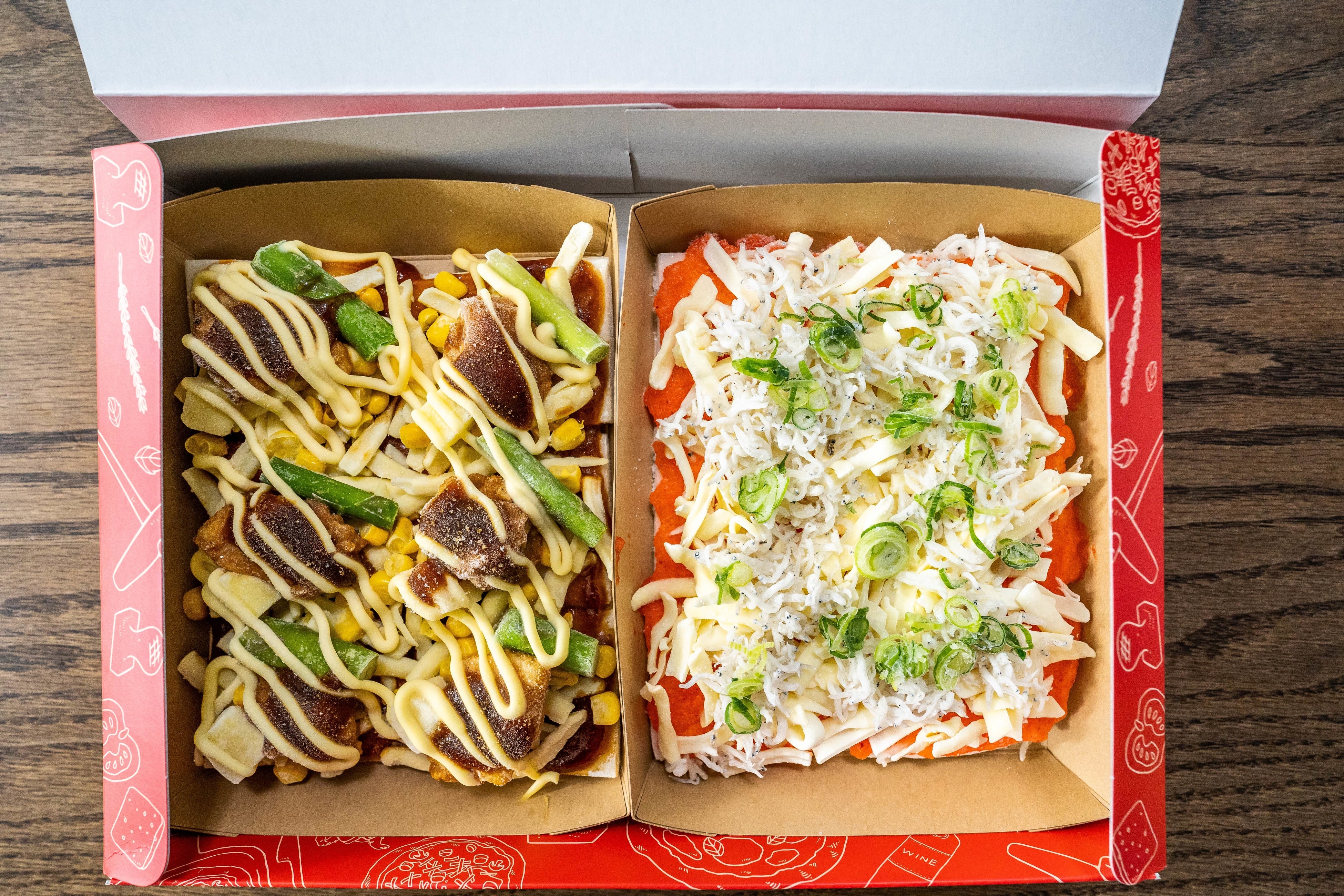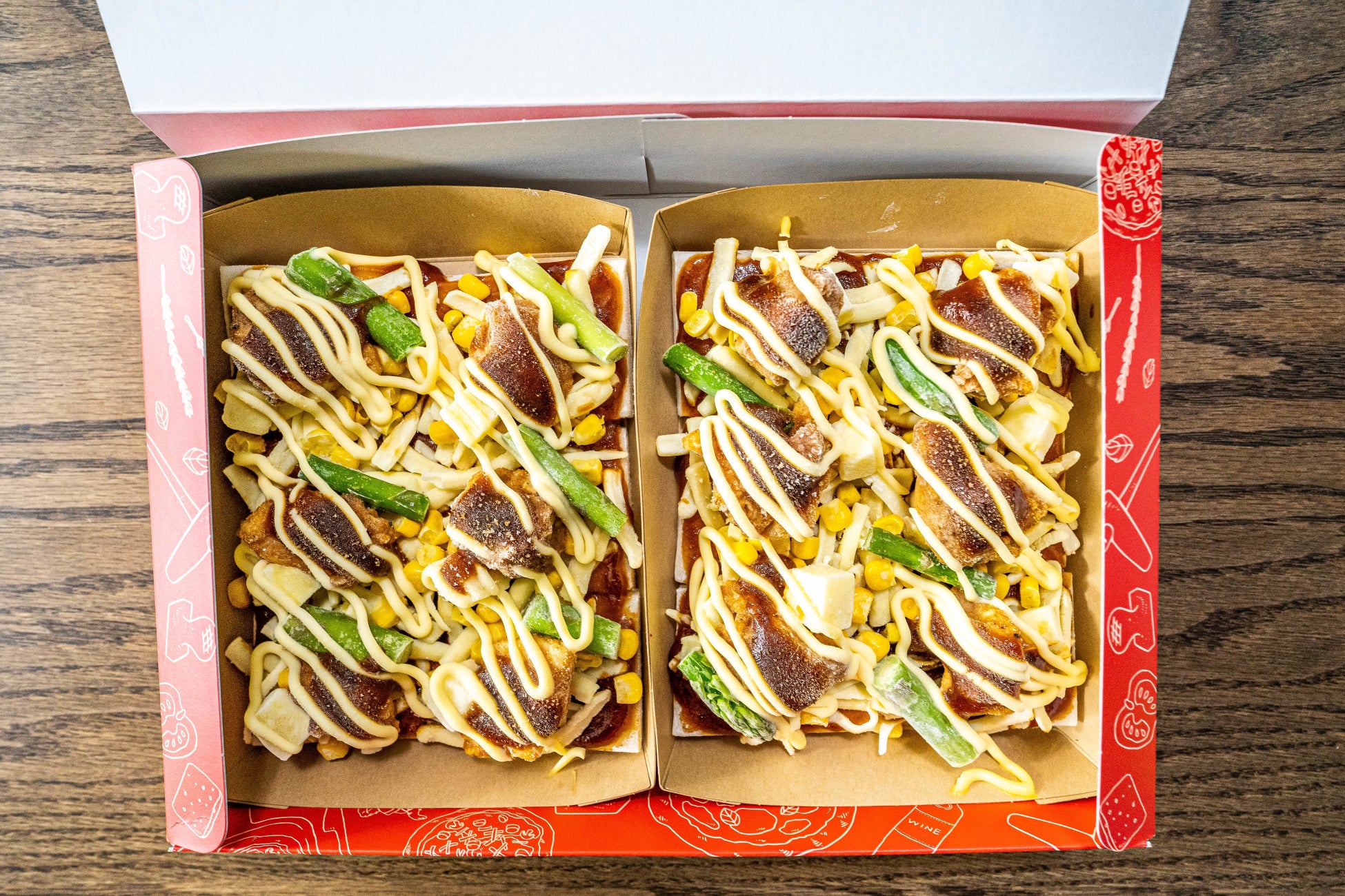 搗き立て餅を使用しているので弾力性抜群でもっちもちなピザです
