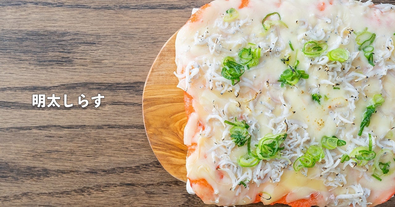 原材料:餅、ナチュラルチーズ(生乳、食塩)、明太ソース(魚卵(まだら、すけとうだら)、食塩、はっ酵調味料、でん粉、しょうちゅう、ワイン、こんぶエキス、酵母エキス、唐辛子、他)、しらす(国産)、青ねぎ/セルロース、調味料(アミノ酸等)、香辛料抽出物(原材料の一部に乳成分、小麦、大豆を含む)