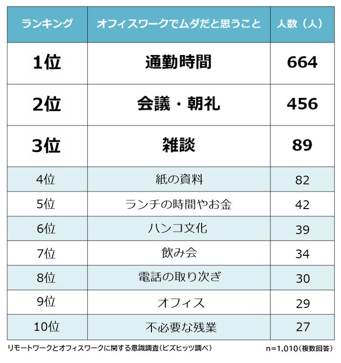 リモートワークをしたからこそ気づいた「オフィスワークのムダ」についてランキング形式でまとめました。