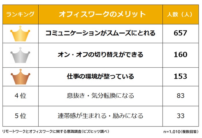 オフィスワークのメリット1位は「コミュニケーションがスムーズに取れる」