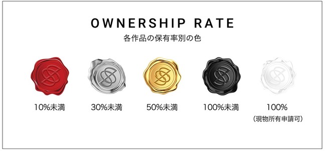 STRAYM(ストレイム)サービス内にてオーナー証明書をご覧いただくことが出来るようになりました。オーナー証明書には、アート情報やお客様のお名前のほかにシーリングスタンプのマークが表示されており、こちらはお客様の各作品の保有率に応じて色が変化いたします。作品を購入された際には是非こちらの色の変化もお楽しみください。またオーナー証明書画面には各種SNS等へのシェア機能がございます。お客様が保有されているお気に入りのアートを是非SNS等でご紹介頂き、ご友人や知人とアート作品を共有してより楽しんでいただければと思います。