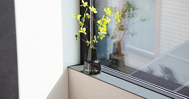 ホワイトだけでなく、ブラックのサッシ用にブラックの窓枠(窓台)も用意しました。ブラックのサッシと窓枠が連続的に繋がることで、サッシと窓枠が一体のフレームになり、今までにないブラックならではの奥行のある表情を作り出すことができるようになりました。
