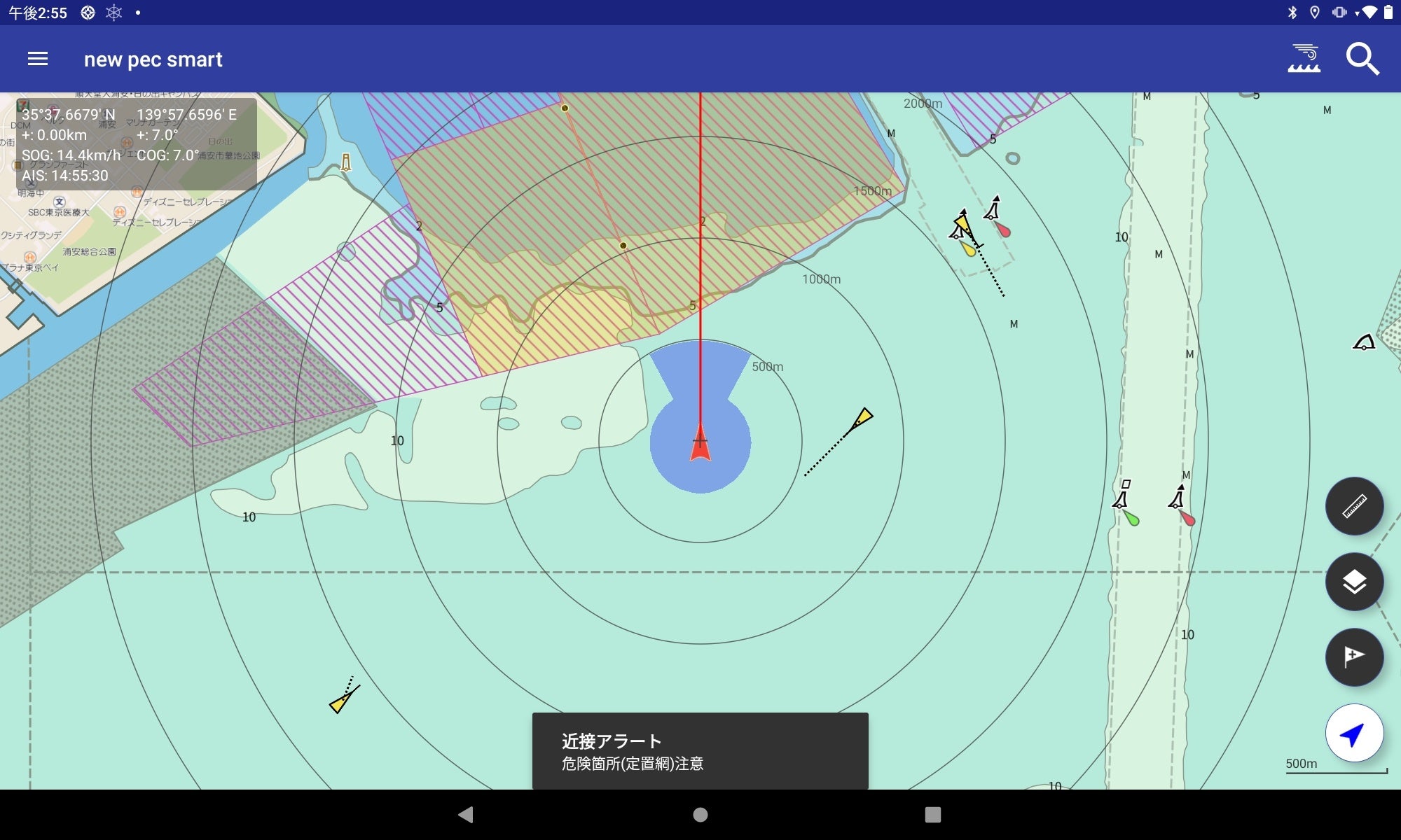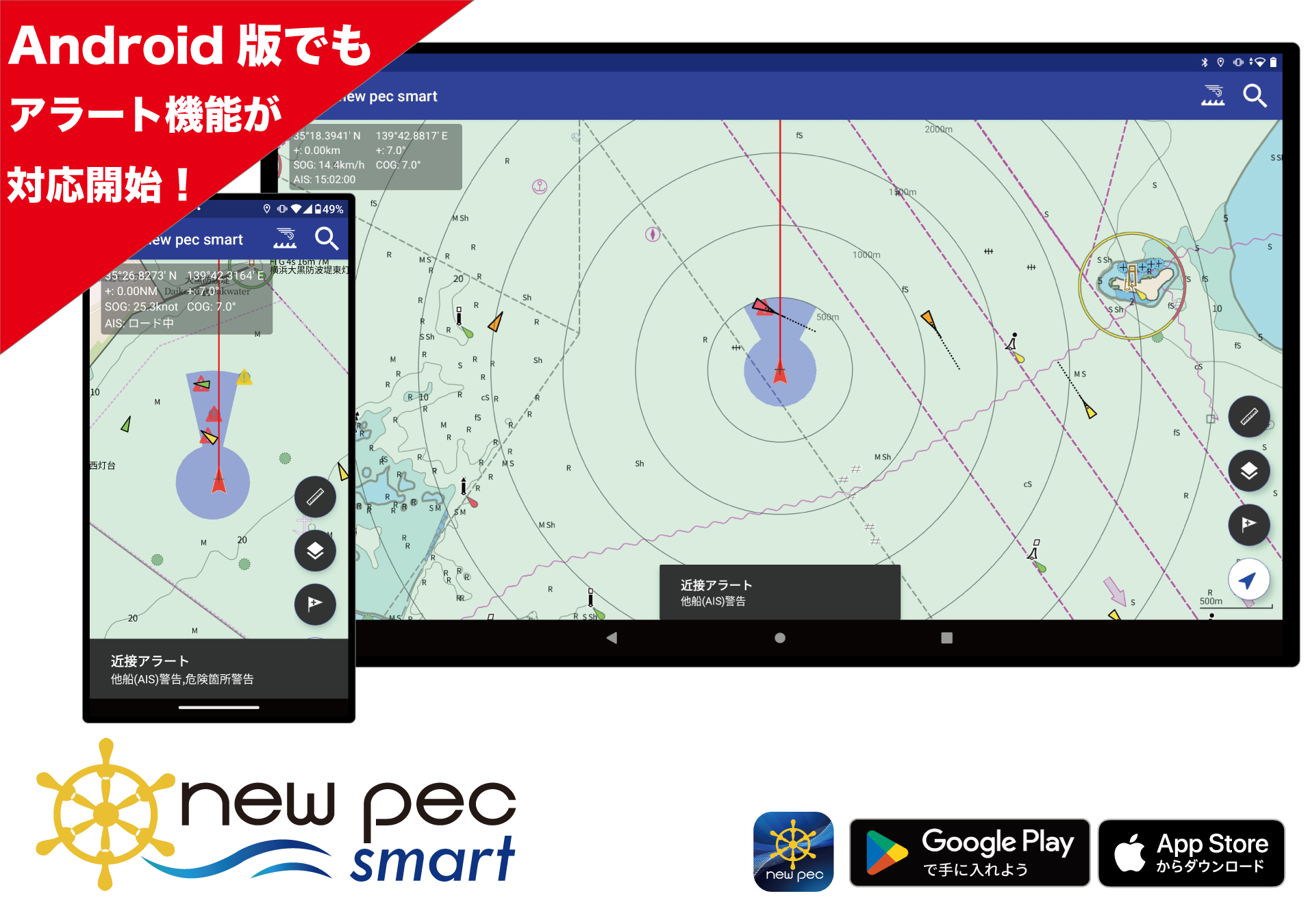 『new pec smart(ニューペックスマート)/Android版』船舶事故を未然に防ぐ「アラート機能」を追加搭載!