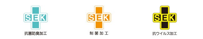 SEKマークの安全性基準に合格した抗菌・抗ウイルス加工剤を使用し、3つのSEKマークを取得しています。