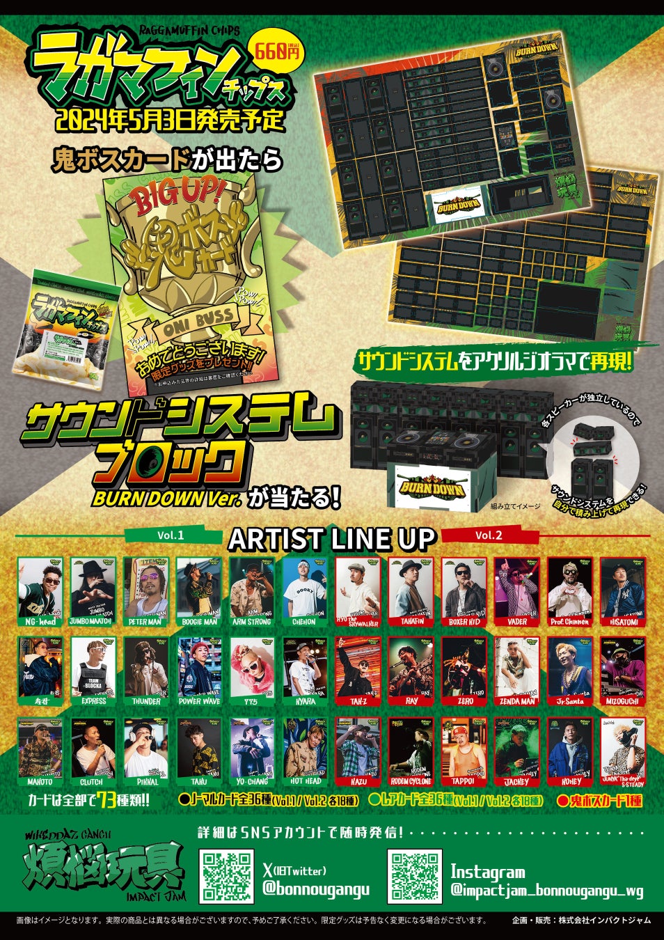 そのほかにあたりカードとなる「鬼ボスカード」が出ると激レアグッズBURN DOWNのSOUNDSYSTEMを忠実に再現した「アクリルブロック」をプレゼント!