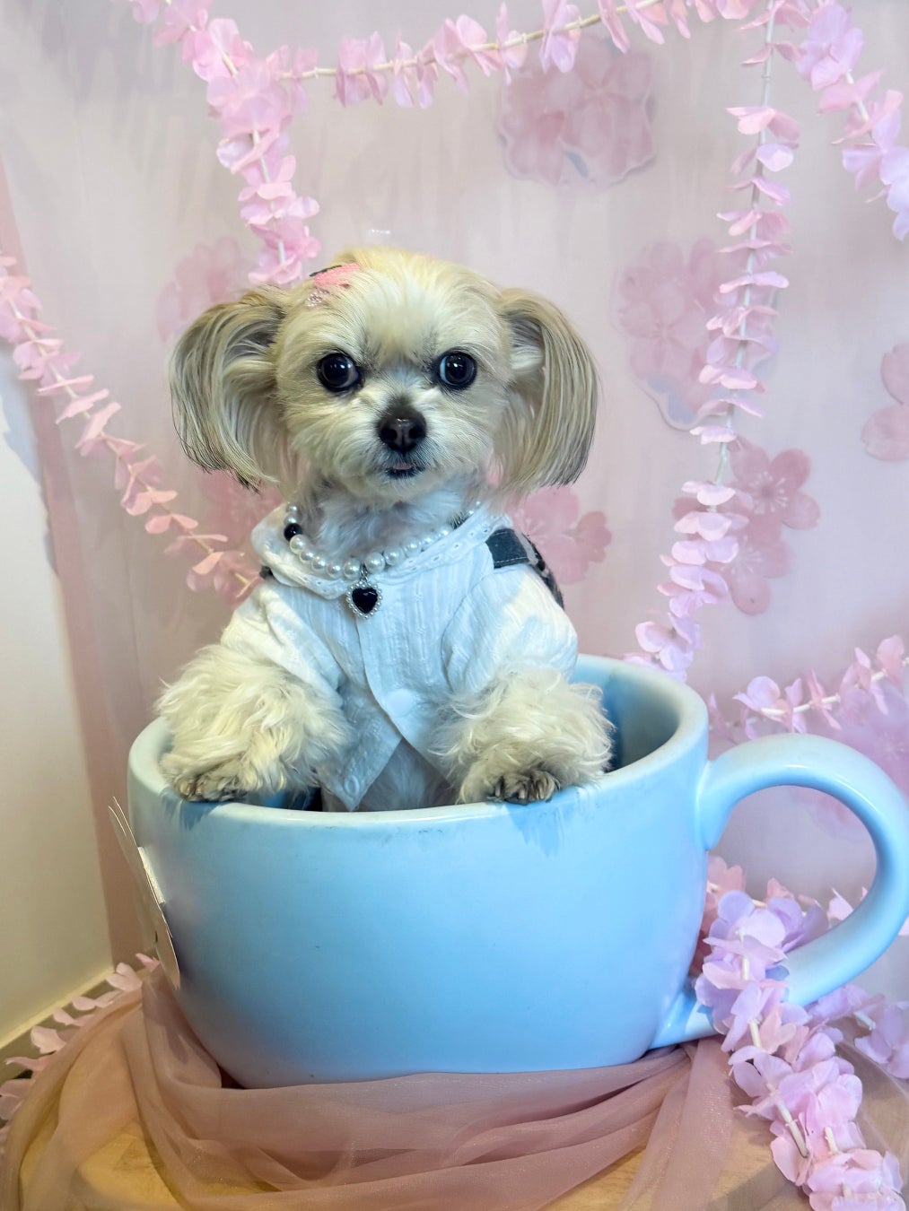 お誕生日会やオフ会などのパーティーの予約もでき、お誕生日のメッセージつきプレートやお誕生日の仮装グッズ貸し出しなども行っています。さらに、毎月変わる手作りのフォトブースコーナーも人気です。大きなカップにはいってティーカッププードル(ティーカップ犬)の体験も。その状態を模した立体アートのドリンクも人気です。