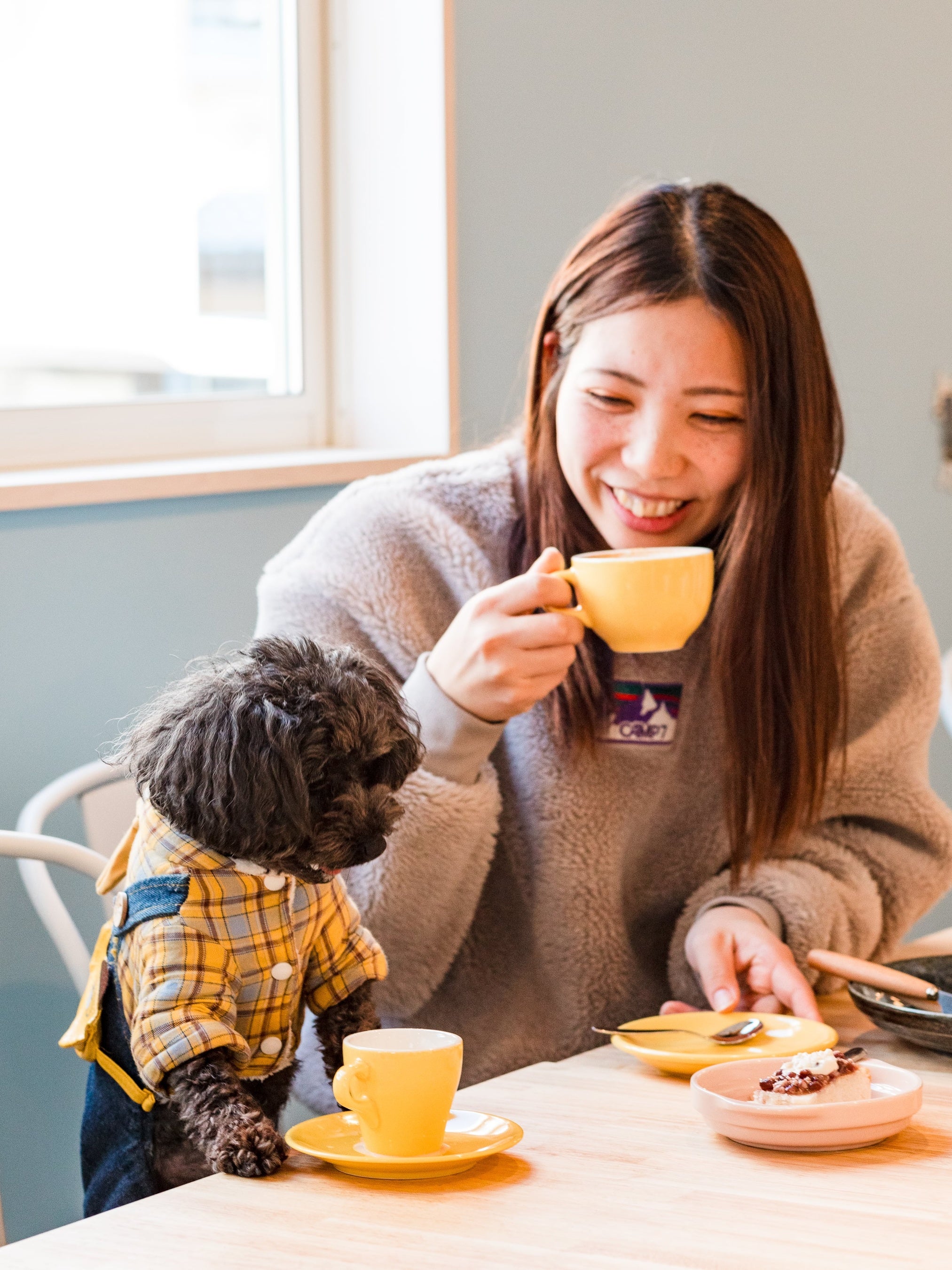 ペットを家族として見ることが当たり前になりつつある中、犬が同伴できる席はテラス席のみの場合が多く、特に夏や冬は一緒に行ける場所がかなり限られることに気づきました。そんなきっかけで、少ないから作ろうと始めたのが『alt. coffee roasters Iwasimizu』です。