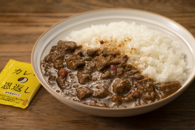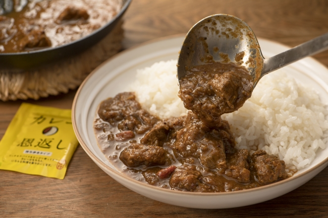 スパイスミックス「カレーの恩返し」のおいしさを手軽にたのしめる「カレーの恩返しカレー」は華やかな味や香りが特徴です。ベースのカレーには、あめ色に炒めたたまねぎをたっぷり使用。小麦粉を使用していないさらりとしたタイプのソースで、しっかりしたうまみやコクを感じたあとで、ほどよくスパイスが香ります。新発売の「カレーの恩返しカレービーフ」はビーフのおいしさがひきたって、まろやかでこくのあるカレーになっています。