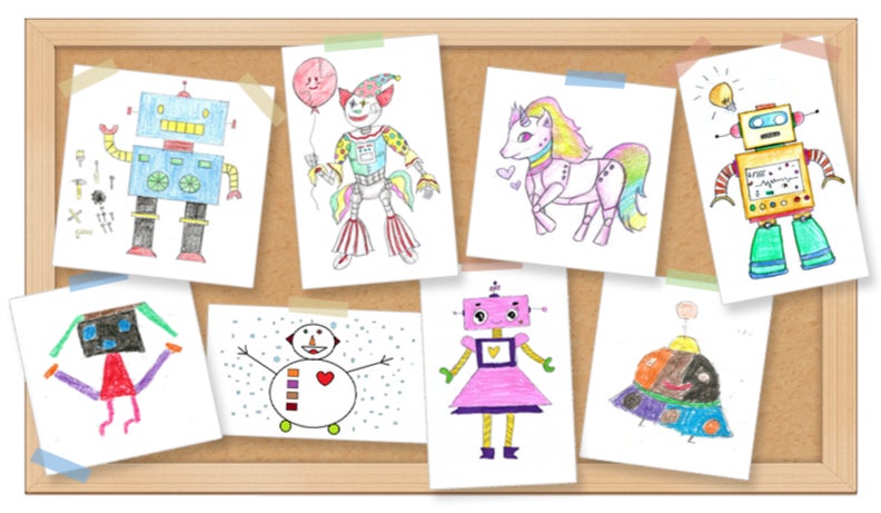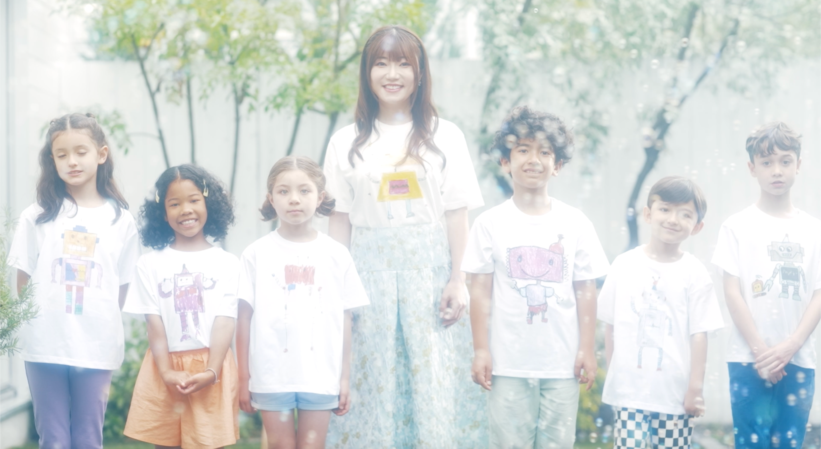 子どもたちが描いたロボットの絵をデジタルデータ化し、Tシャツになりました。現在日本、中国、フィリピン、ケニア、シンガポールから7000枚(2023年5月現在)の絵が集まっています。