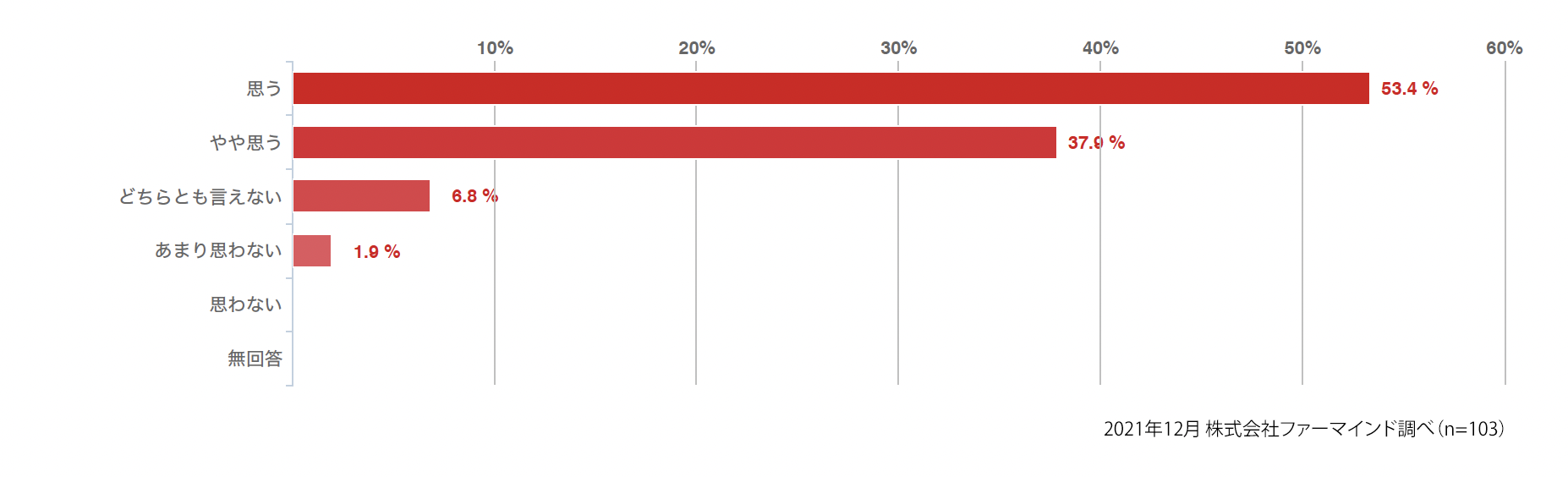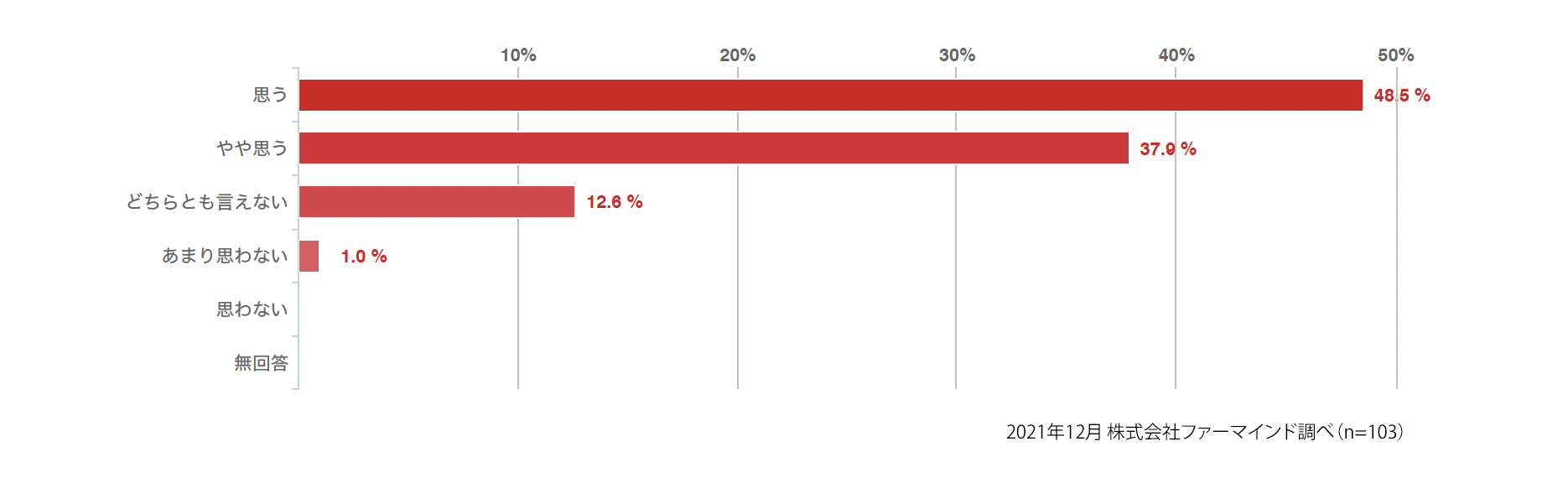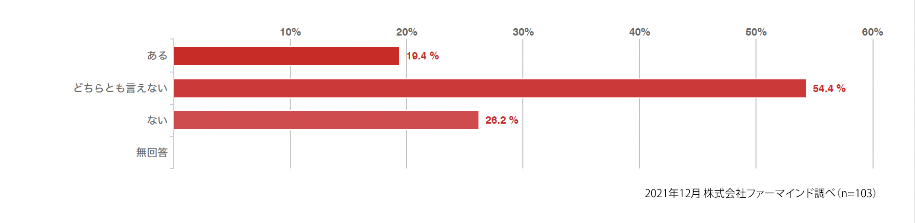 どちらとも言えない・十分にないが8割。コロナ前に比べ野菜のメニューは増えたものの、レパートリーが十分あるわけではないようです。