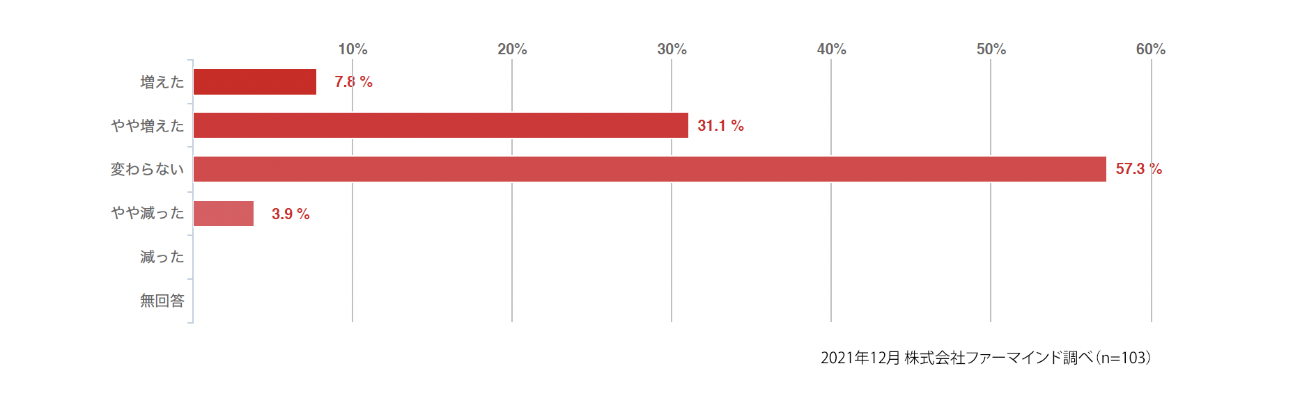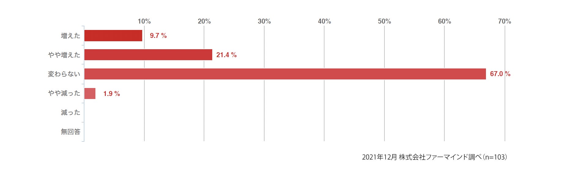 3割のご家庭が増えたものの、7割のご家庭では品数に変化はありませんでした。