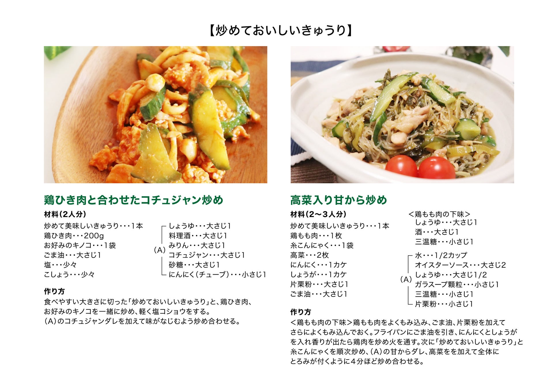 サラダや漬物で脇役になりがちなきゅうりですが、お肉と炒めたスタミナ料理や肉詰めにしたオーブン料理など、いつものきゅうりの概念を覆すメニューがお得意です。パリッとした食感と、しっかりしたきゅうりの香りが楽しめる「炒めておいしいきゅうり」で、新しい野菜料理をお楽しみください。もちろんサラダや漬物でも美味しく召し上がっていただけます。