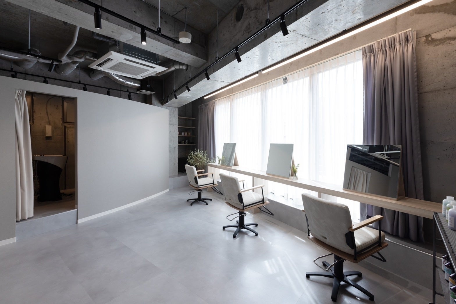 カット、パーマ、カラーといった⼀般的な美容室ではメインとなるメニューがない、「ハサミを持たない美容室」 です。現在、九州に3店舗(⼤分・福岡)と東京に2店舗(恵⽐寿・⾃由が丘)を展開しています。