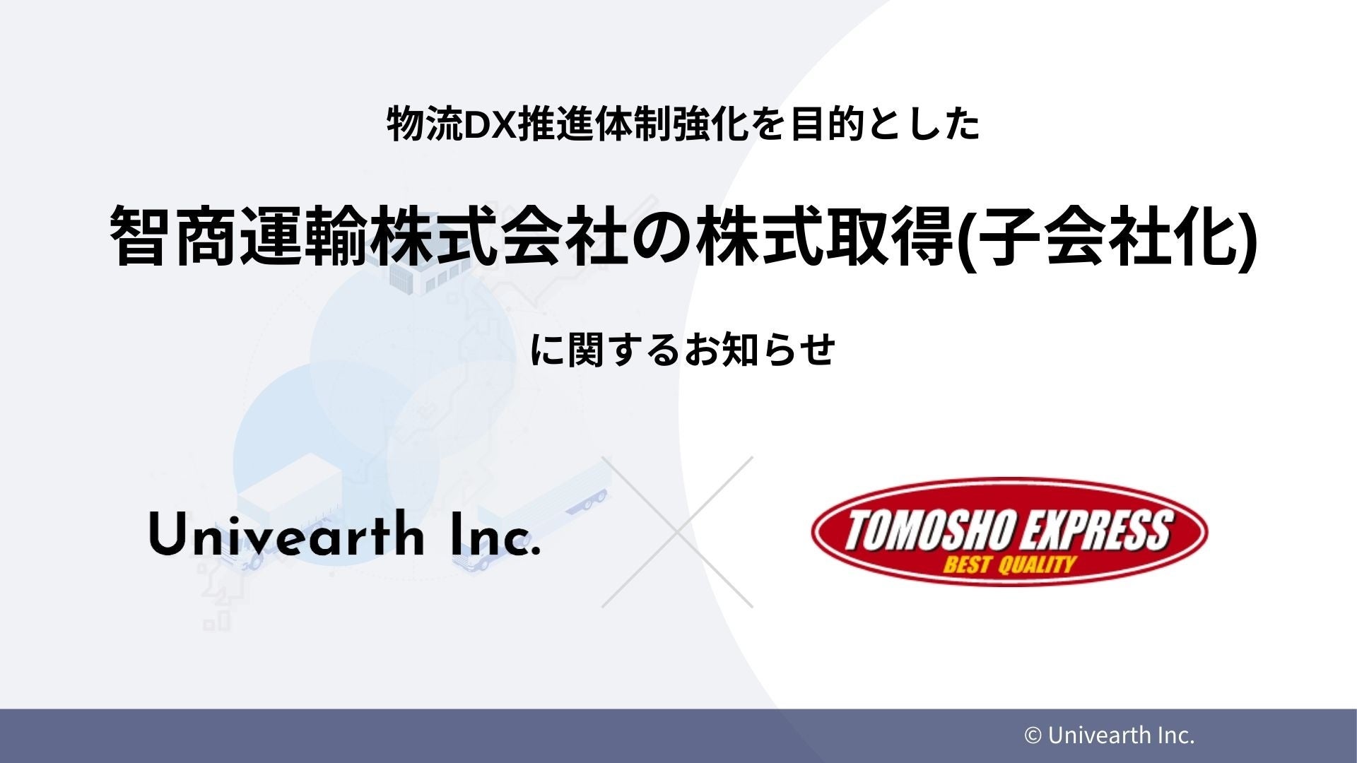 Univearth、物流DX推進体制強化を目的とした株式会社智商運輸の株式取得(子会社化)に関するお知らせ