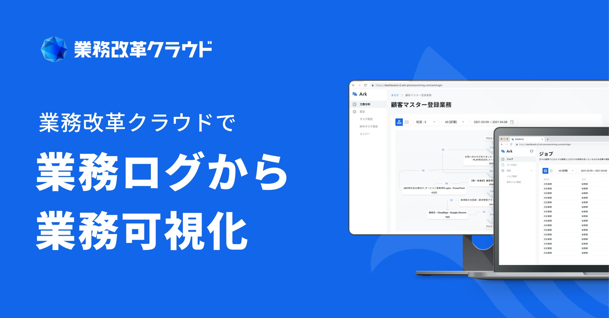 当社は2019年に「すべての労働を自動化し、誰もが『好きを仕事』にできる世界へ」のビジョンのもと創業しました。2020年には「Arkプロセスマイニング(現:業務改革クラウド)」をリリースし、多くの企業様にご利用いただきました。