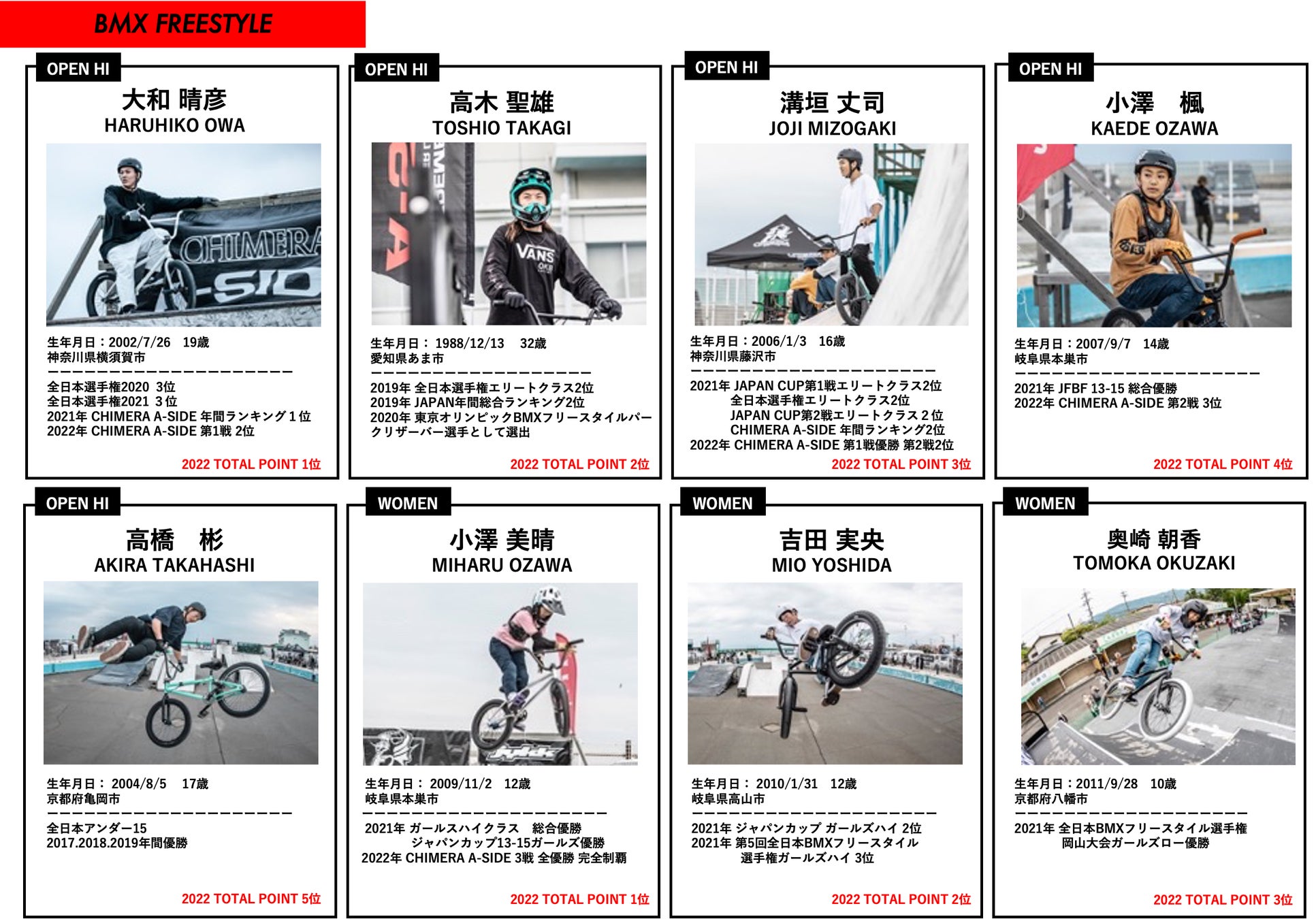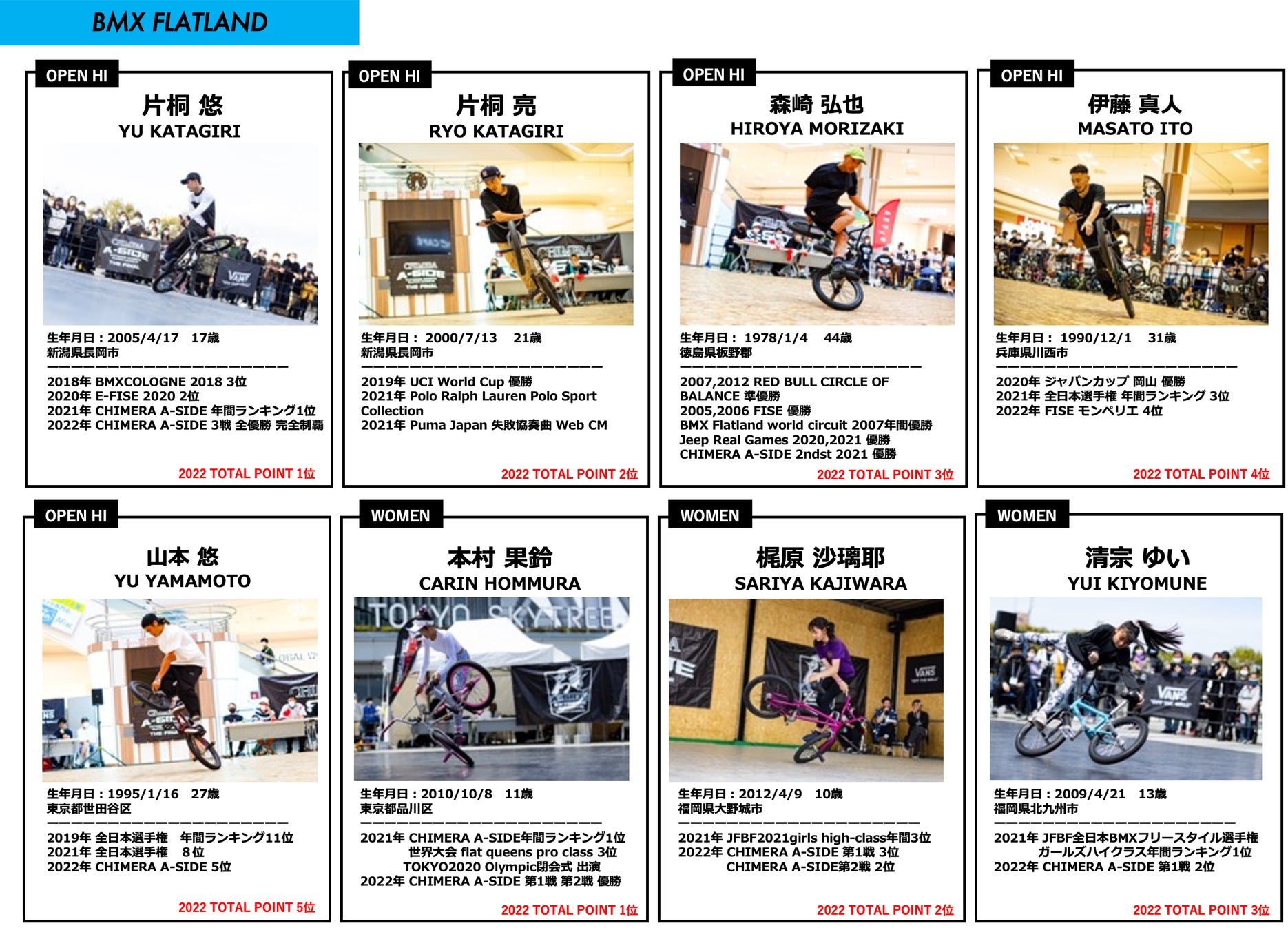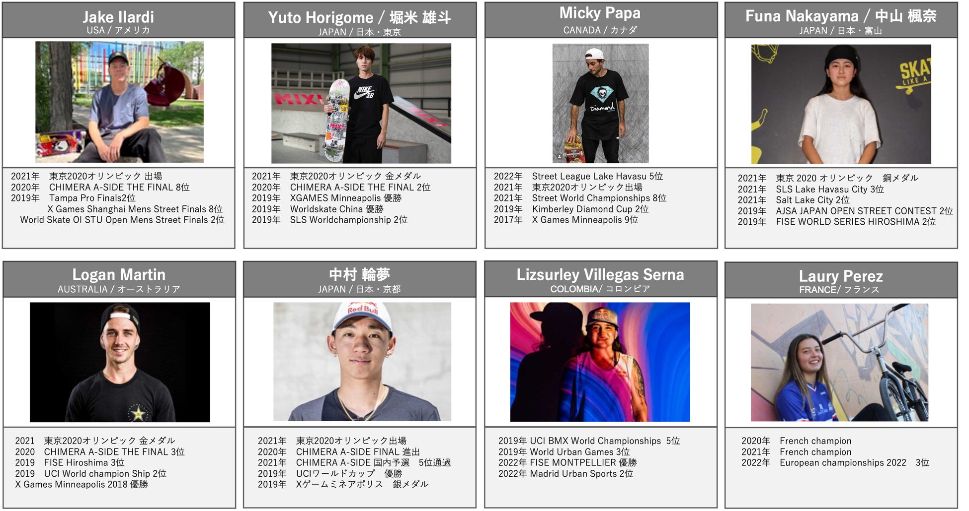 今回も、世界トップアスリートとの舞台に立つため全国予選を開催。世界が注目する10代選手が揃って決勝へのチケットを手にしました。トップレベルの技を間近で楽しむことができる3,000名限定の入場チケットは10月1日(土)12:00より販売スタートです。CHIMERAが「誰もが参加でき、誰もが目標にできる大会」と位置付ける本大会。新たなスターの誕生にも是非ご注目ください。