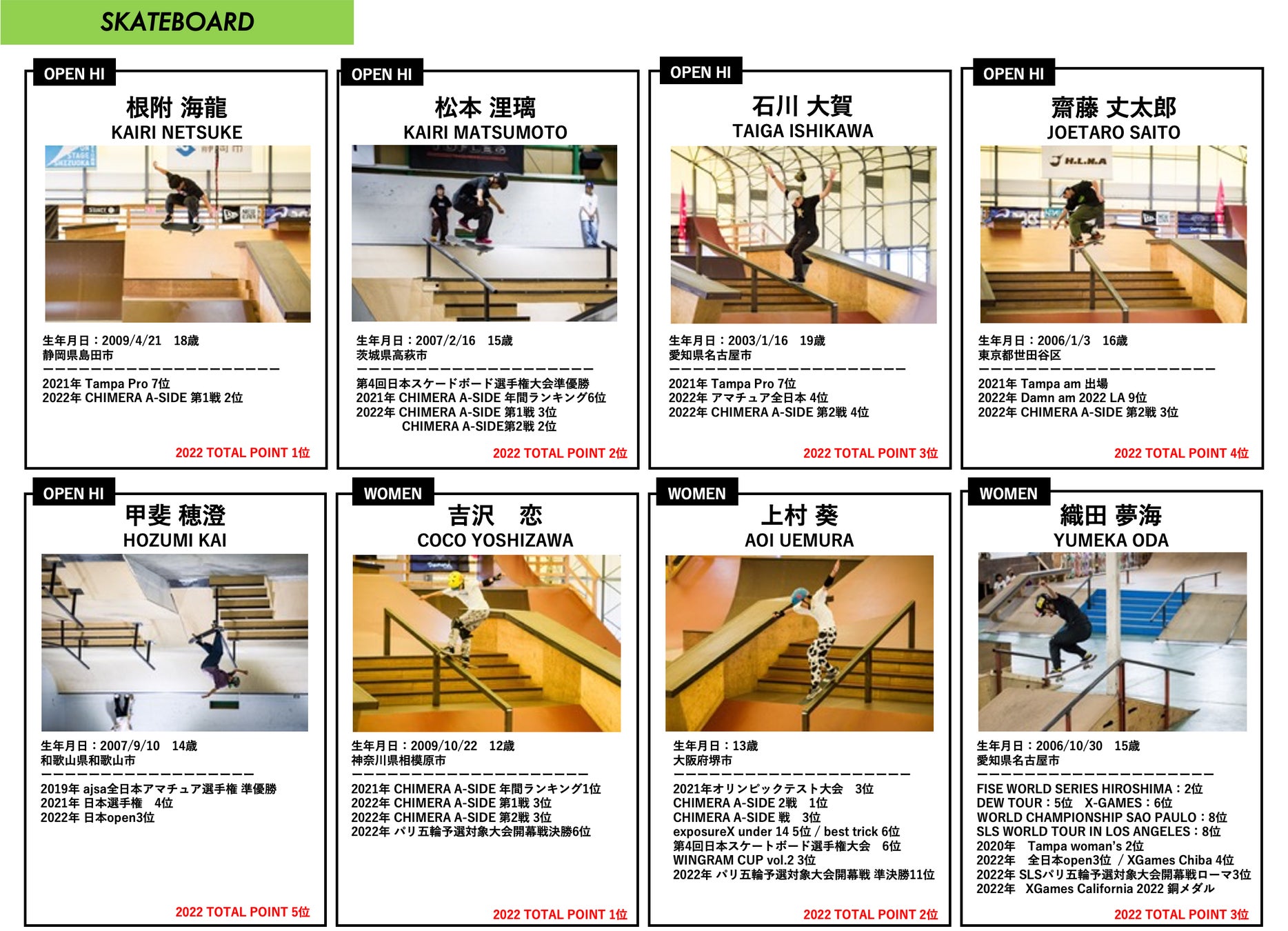 日本が誇る世界が注目する10代選手が集結 堀米雄斗・中村輪夢・ローガンマーティンも参戦!CHIMERA A-SIDE THE FINAL