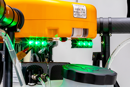 これまでオプションだった液剤散布装置や粒剤散布装置の内部の残量警告を標準装備しています。機体本体に取り付けられているLEDで残量を操縦者に知らせます。